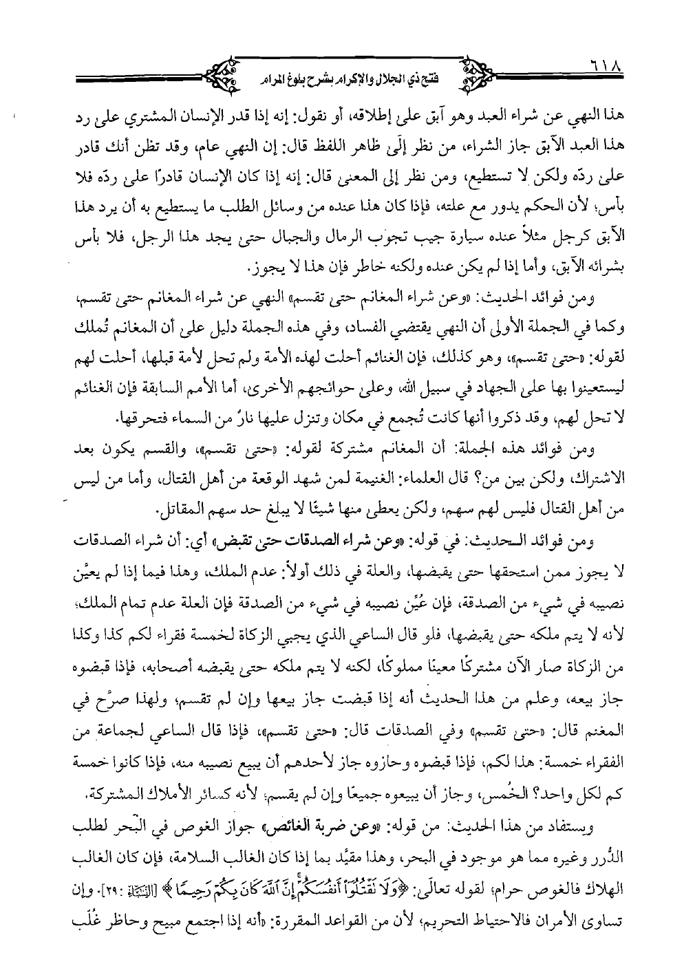 كتاب فتح ذي الجلال والإكرام بشرح بلوغ المرام ط المكتبة الإسلامية (اسم الجزء: 3)
