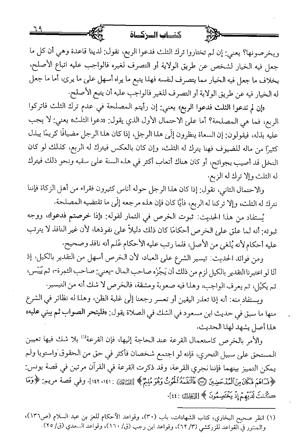 والأمر بالخرص كاستعمال القرعة عند الحاجة إليها، فإن القرعة بلا شك فيها تعيين المستحق على سبيل التحري، فإنه لو اجتمع شخصان فأكثر في حق من الحقوق واستويا ولم يمكن التمييز بينهما فإننا نجري القرعة، وقد ذكرت القرعة في القرآن مرتين في قصة يونس: {فساهم فكان من المدحضين فألتقمه الحوت وهو مليم} [الصافات: 141، 142]. وفى قصة مريم: {وما كنت لديهم إذ يختصمون} [آل عمران: 44].