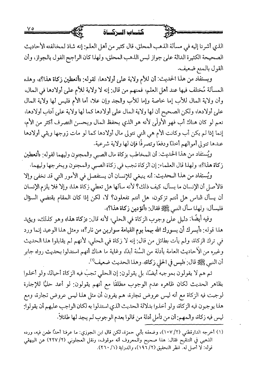ثم هم لا يقولون بموجبه أيضًا، بل يقولون: إن الحلي تجب فيه الزكاة أحيانًا، ولو أخذوا بظاهر الحديث لكان ظاهره عدم الوجوب مطلقا مع أنهم يقولون: لو أعد حليا للإجارة لوجبت فيه الزكاة مع أنه ليس عروض تجارة، هم يقرون أن مثل هذا ليس عروض تجارة، ومع هذا يوجبون فيه الزكاة، ولو أخذوا بدلالة الحديث الذي استدلوا به لكان الواجب عليهم أن يقولوا: ليس فيه زكاة، والمهم: أن من تأمل أدلة من قالوا بعدم الوجوب لم يجد لها طائلًا.
