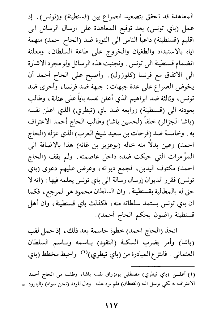 (¬1) أعلن (باي تيطري) مصطفى بومزراق نفسه باشا، وطلب من الحاج أحمد الاعتراف به لكي يرسل إليه (القفطان) فلم يرد عليه. وقال للوفد (نحن سواء) والبارود =