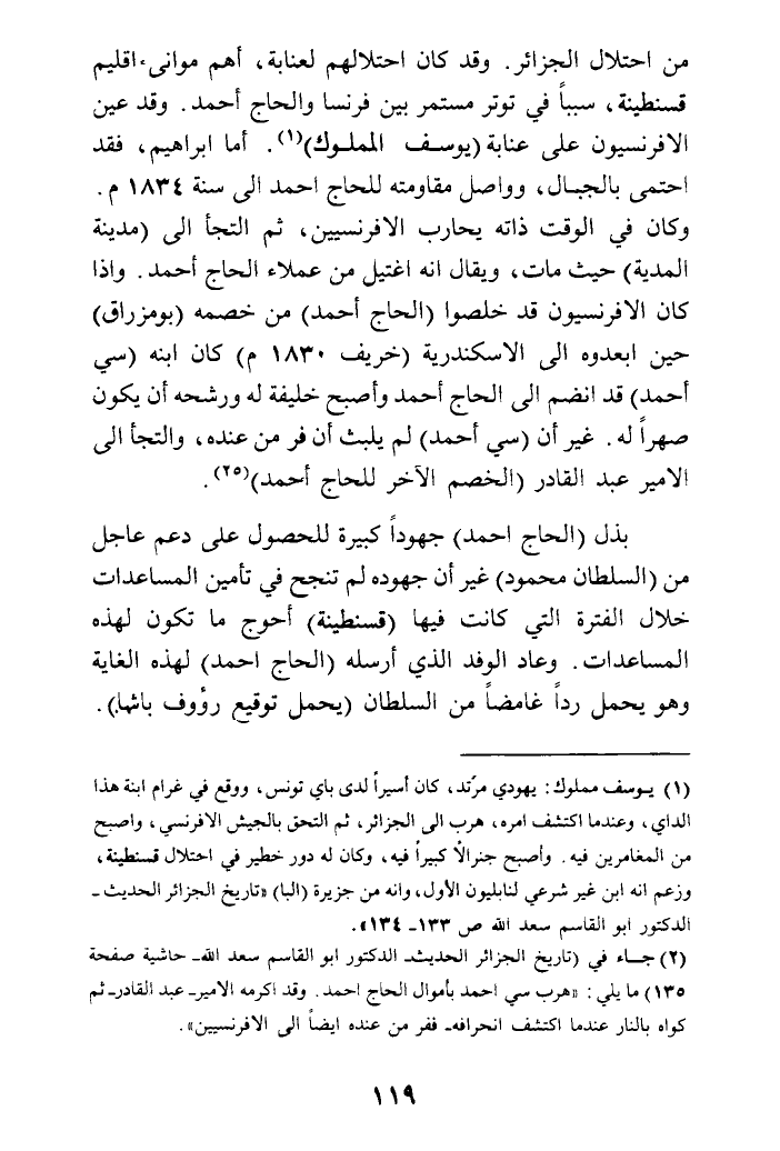(¬1) يوسف مملوك: يهودي مرتد، كان أسيرا لدى باي تونس، ووقع في غرام ابنة هذا الداي، وعندما اكتشف أمره، هرب إلى الجزائر، ثم التحق بالجيش الإفرنسي، وأصبح من المغامرين فيه. وأصبح جنرالا كبيرا فيه، وكان له دور خطير في احتلال قسنطينة، وزعم أنه ابن غير شرعي لنابليون الأول، وأنه من جزيرة (البا) (تاريخ الجزائر الحديث - الدكتور أبو القاسم سعد الله ص 133 - 134).