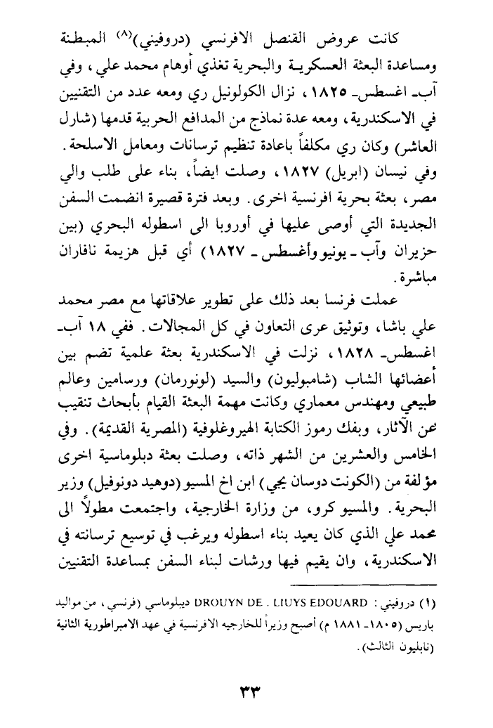 (¬1) دروفيني: DROUYN DE LIUYS EDOURAD ديبلوماسي (فرنسي، من مواليد باريس (1805 - 1881 م) أصبح وزيرا للخارجية الإفرنسية في عهد الإمبراطورية الثانية (نابليون الثالث).