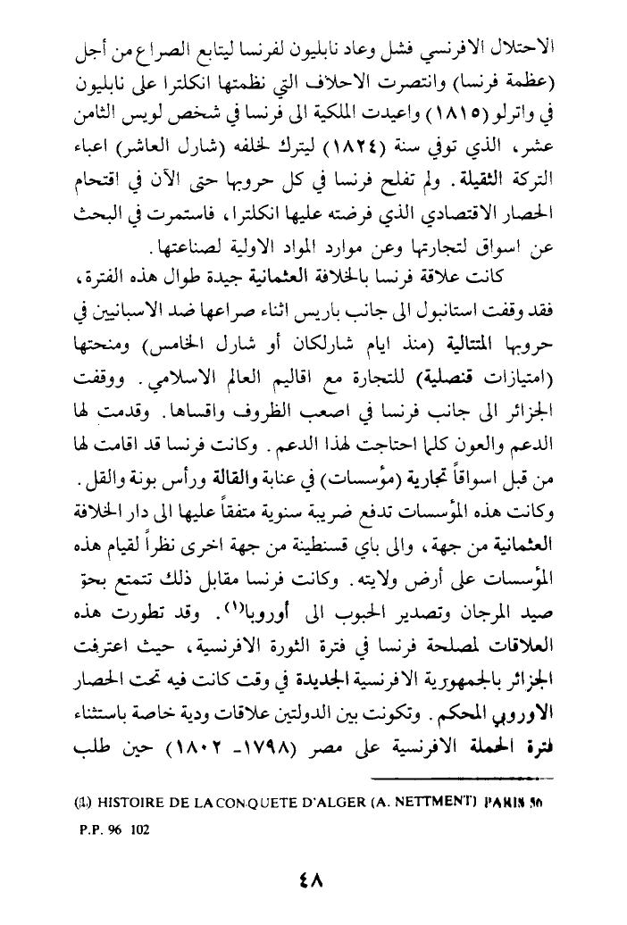(¬1) HISTOIRE DE LA CONQUETE D'ALGER (A. NETTMENT) PARIS 56. P.P 96 102.