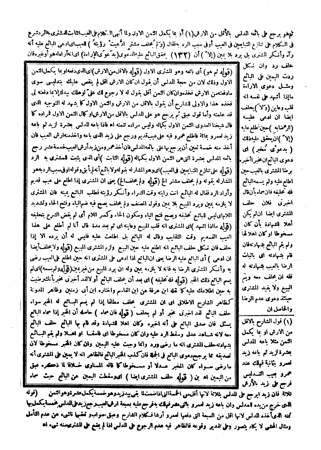 وَلَمَّا أَنْهَى الْكَلَامَ عَلَى الْعَيْبِ الثَّابِتِ لِلْمُشْتَرِي بِهِ الرَّدُّ شَرَعَ فِي الْكَلَامِ عَلَى تَنَازُعِ الْمُتَبَايِعَيْنِ فِي الْعَيْبِ، أَوْ فِي سَبَبِ الرَّدِّ بِهِ فَقَالَ (وَلَمْ يَحْلِفْ مُشْتَرٍ اُدُّعِيَتْ رُؤْيَتُهُ) لِلْعَيْبِ أَيْ ادَّعَى الْبَائِعُ عَلَيْهِ أَنَّهُ رَآهُ وَأَنْكَرَ الْمُشْتَرِي بَلْ يَرُدُّ بِلَا يَمِينٍ (إلَّا) أَنْ يُحَقِّقَ الْبَائِعُ عَلَيْهِ الدَّعْوَى (بِدَعْوَى الْإِرَاءَةِ) أَيْ أَنَّهُ أَرَاهُ لَهُ هُوَ، أَوْ غَيْرُهُ، فَإِنْ حَلَفَ رَدَّ، وَإِنْ نَكَلَ رُدَّتْ الْيَمِينُ عَلَى الْبَائِعِ وَمِثْلُ دَعْوَى الْإِرَاءَةِ مَا إذَا أَشْهَدَ عَلَى نَفْسِهِ أَنَّهُ قَلَّبَ وَعَايَنَ (وَلَا) يَحْلِفُ أَيْضًا إنْ ادَّعَى عَلَيْهِ (الرِّضَا بِهِ) حِينَ اطَّلَعَ عَلَيْهِ (إلَّا) أَنْ يُحَقِّقَ عَلَيْهِ ذَلِكَ (بِدَعْوَى مُخْبِرٍ) أَيْ دَعْوَى الْبَائِعِ أَنَّ مُخْبِرًا أَخْبَرَهُ بِرِضَا الْمُشْتَرِي بِالْعَيْبِ حِينَ اطَّلَعَ عَلَيْهِ وَلَمْ يُسَمِّهِ الْبَائِعُ فَلَهُ تَحْلِيفُهُ، فَإِنْ سَمَّاهُ بِأَنْ قَالَ أَخْبَرَنِي فُلَانٌ حَلِفَ الْمُشْتَرِي أَيْضًا إنْ لَمْ يَكُنْ أَهْلًا لِلشَّهَادَةِ بِأَنْ كَانَ مَسْخُوطًا، أَوْ كَانَ أَهْلًا لَهَا وَلَمْ يَقُمْ الْبَائِعُ بِشَهَادَتِهِ، فَإِنْ قَامَ بِشَهَادَتِهِ أَيْ بِإِثْبَاتِ الرِّضَا بِالْعَيْبِ بِشَهَادَتِهِ لَهُ فَلَهُ أَنْ يَحْلِفَ مَعَهُ وَيُتِمَّ الْبَيْعَ وَلَا يُفِيدُ الْمُشْتَرِي حِينَئِذٍ دَعْوَى عَدَمِ الرِّضَا وَالْحَاصِلُ أَنَّ