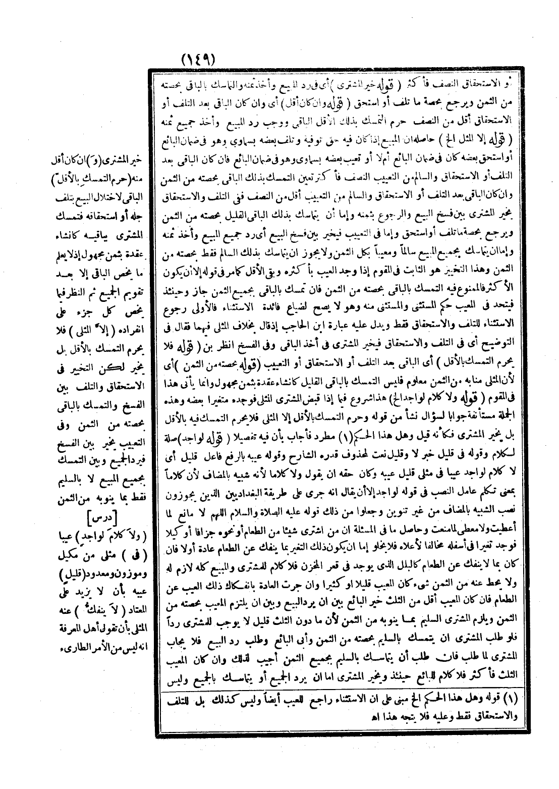 ـــــــــــــــــــــــــــــQأَوْ الِاسْتِحْقَاقِ النِّصْفُ فَأَكْثَرُ (قَوْلُهُ خُيِّرَ الْمُشْتَرِي) أَيْ فِي رَدِّ الْمَبِيعِ وَأَخْذِ ثَمَنِهِ وَالتَّمَاسُكِ بِالْبَاقِي بِحِصَّتِهِ مِنْ الثَّمَنِ وَيَرْجِعُ بِحِصَّةِ مَا تَلِفَ، أَوْ اُسْتُحِقَّ.