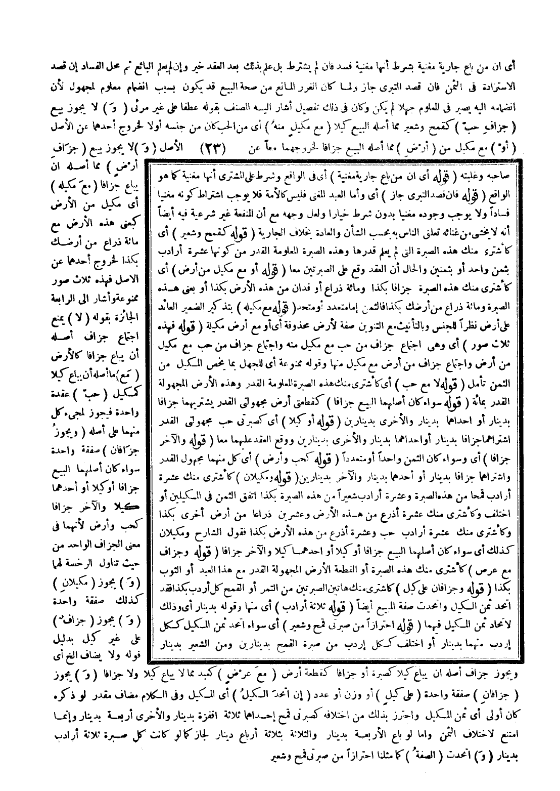 (قَوْلُهُ: مَعَ مَكِيلِهِ) بِتَذْكِيرِ الضَّمِيرِ الْعَائِدِ عَلَى أَرْضٍ نَظَرًا لِلْجِنْسِ وَبِالتَّأْنِيثِ مَعَ التَّنْوِينِ صِفَةٌ لِأَرْضٍ مَحْذُوفَةٍ أَيْ أَوْ مَعَ أَرْضٍ مَكِيلَةٍ.