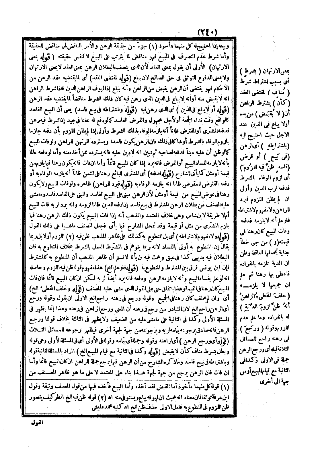 ـــــــــــــــــــــــــــــQوَبَيْعَهُ إذَا اُحْتِيجَ لَهُ كُلٌّ مِنْهُمَا مَأْخُوذٌ جُزْءًا مِنْ حَقِيقَةِ الرَّهْنِ وَالْأَمْرُ الْمُنَاقِضُ لَهُمَا مُنَاقِضٌ لِلْحَقِيقَةِ، وَأَمَّا شَرْطُ عَدَمِ التَّصَرُّفِ فِي الْمَبِيعِ فَهُوَ مُنَاقِضٌ لِمَا يَتَرَتَّبُ عَلَى الْبَيْعِ لَا لِنَفْسِ حَقِيقَتِهِ (قَوْلُهُ بِمَعْنَى الِارْتِهَانِ) الْأَوْلَى أَنْ يَقُولَ بِمَعْنَى الْعَقْدِ؛ لِأَنَّ الَّذِي يَتَّصِفُ بِالْبُطْلَانِ الرَّهْنُ بِمَعْنَى الْعَقْدِ لَا بِمَعْنَى الِارْتِهَانِ وَلَا بِمَعْنَى الْمَدْفُوعِ لِلتَّوَثُّقِ فِي حَقِّ الصَّالِحِ لَأَنْ يُبَاعَ (قَوْلُهُ لِمُقْتَضَى الْعَقْدِ) أَيْ لِمَا يَقْتَضِيهِ عَقْدُ الرَّهْنِ مِنْ الْأَحْكَامِ فَهُوَ يَقْتَضِي أَنَّ الرَّهْنَ يُقْبَضُ مِنْ الرَّاهِنِ وَأَنَّهُ يُبَاعُ إذَا لَمْ يُوَفِّ الرَّاهِنُ الدَّيْنَ فَإِذَا شَرَطَ الرَّاهِنُ أَنَّهُ لَا يُقْبَضُ مِنْهُ أَوْ أَنَّهُ لَا يُبَاعُ فِي الدَّيْنِ الَّذِي رَهَنَ فِيهِ كَانَ ذَلِكَ الشَّرْطُ مُنَاقِضًا لِمَا يَقْتَضِيهِ عَقْدُ الرَّهْنِ (قَوْلُهُ أَوْ لَا يُبَاعُ فِي الدَّيْنِ) أَيْ الَّذِي رَهَنَ فِيهِ (قَوْلُهُ وَبِاشْتِرَاطِهِ فِي بَيْعٍ فَاسِدٍ) يَعْنِي أَنَّ الْبَيْعَ الْفَاسِدَ كَالْوَاقِعِ وَقْتَ نِدَاءِ الْجُمُعَةِ أَوْ لَأَجَلٍ مَجْهُولٍ وَالْقَرْضُ الْفَاسِدُ كَمَا لَوْ دَفَعَ لَهُ عَفِنًا فِي جَيِّدٍ إذَا شُرِطَ فِيهِ رَهْنٌ فَدَفَعَهُ الْمُشْتَرِي أَوْ الْمُقْتَرِضُ ظَانًّا أَنَّهُ يَلْزَمُهُ الْوَفَاءُ بِذَلِكَ الشَّرْطِ، وَأَوْلَى إذَا لَمْ يَظُنَّ اللُّزُومَ بِأَنْ دَفَعَهُ جَازِمًا بِلُزُومِ الْوَفَاءِ بِالشَّرْطِ أَوْ شَاكًّا فِي ذَلِكَ فَإِنَّ الرَّهْنَ يَكُونُ فَاسِدًا وَيَسْتَرِدُّهُ الْمُرْتَهِنُ لِلرَّاهِنِ وَلَوْ فَاتَ الْمَبِيعُ كَمَا لَوْ ظَنَّ أَنَّ عَلَيْهِ دَيْنًا فَدَفَعَهُ لِصَاحِبِهِ، ثُمَّ تَبَيَّنَّ أَنَّهُ لَا دَيْنَ عَلَيْهِ فَإِنَّهُ يَسْتَرِدُّهُ مِمَّنْ أَخَذَهُ مِنْهُ، وَأَمَّا لَوْ دَفَعَهُ عَالِمًا بِأَنَّهُ لَا يَلْزَمُهُ لِفَسَادِ الْبَيْعِ أَوْ الْقَرْضِ فَإِنَّهُ يُرَدُّ إذَا كَانَ الْمَبِيعُ قَائِمًا، وَأَمَّا إنْ فَاتَ فَإِنَّهُ يَكُونُ رَهْنًا فِيمَا يَلْزَمُ مِنْ قِيمَةٍ أَوْ مِثْلٍ كَمَا يَأْتِي لِلشَّارِحِ (قَوْلُهُ فَدَفَعَهُ) أَيْ الْمُشْتَرِي لِلْبَائِعِ رَهْنًا عَلَى الثَّمَنِ ظَانًّا أَنَّهُ يَلْزَمُهُ الْوَفَاءُ بِهِ، أَوْ دَفَعَهُ الْمُقْتَرِضُ لِلْمُقْرِضِ ظَانًّا أَنَّهُ يَلْزَمُهُ الْوَفَاءُ بِهِ (قَوْلُهُ فَيُرَدُّ لِلرَّاهِنِ) ظَاهِرُهُ وَلَوْ فَاتَ الْمَبِيعُ وَلَا يَكُونُ رَهْنًا فِي عِوَضِ الْمَبِيعِ مِنْ قِيمَةٍ أَوْ مِثْلٍ؛ لِأَنَّ الرَّهْنَ مَبْنِيٌّ عَلَى الْبَيْعِ الْفَاسِدِ وَالْمَبْنِيُّ عَلَى الْفَاسِدِ فَاسِدٌ وَمَا مَشَى عَلَيْهِ الْمُصَنِّفُ مِنْ بُطْلَانِ الرَّهْنِ الْمُشْتَرَطِ فِي بَيْعٍ فَاسِدٍ إذَا دَفَعَهُ الْمَدِينُ ظَانًّا لُزُومَهُ وَأَنَّهُ يُرَدُّ لِرَبِّهِ فَاتَ الْمَبِيعُ أَمْ لَا طَرِيقَةٌ لِابْنِ شَاسٍ وَهِيَ خِلَافُ الْمُعْتَمَدِ وَالْمَذْهَبُ أَنَّهُ إذَا فَاتَ الْمَبِيعُ يَكُونُ ذَلِكَ الرَّهْنُ رَهْنًا فِيمَا يَلْزَمُ الْمُشْتَرِيَ مِنْ مِثْلٍ أَوْ قِيمَةٍ، وَقَدْ تَمَحَّلَ الشَّارِحُ فِيمَا يَأْتِي فَجَعَلَ الْمُصَنِّفَ مَاشِيًا عَلَى ذَلِكَ الْقَوْلِ.