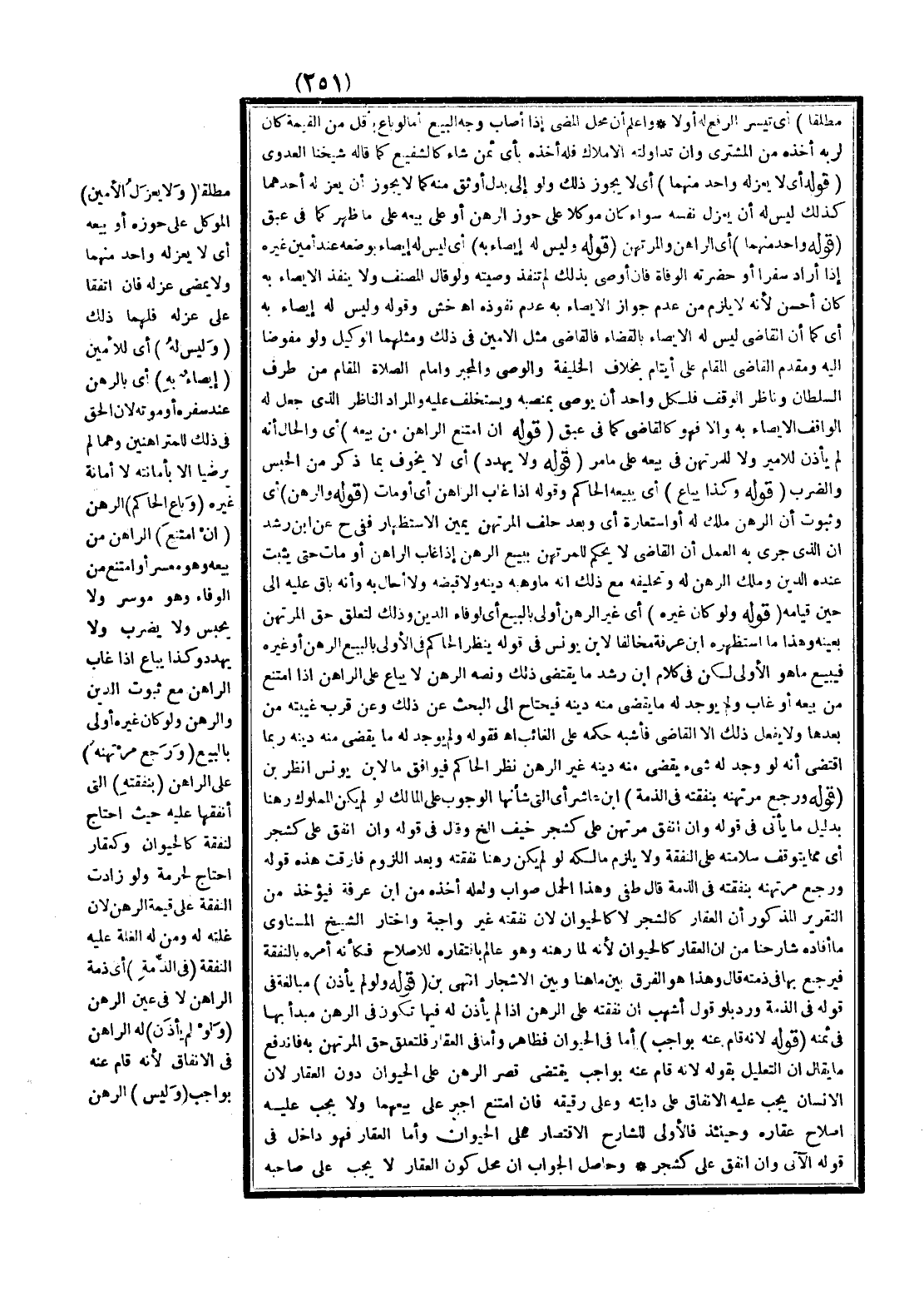 وَاعْلَمْ أَنَّ مَحَلَّ الْمُضِيِّ إذَا أَصَابَ وَجْهَ الْبَيْعِ أَمَّا لَوْ بَاعَ بِأَقَلَّ مِنْ الْقِيمَةِ كَانَ لِرَبِّهِ أَخْذُهُ مِنْ الْمُشْتَرِي وَإِنْ تَدَاوَلَتْهُ الْأَمْلَاكُ فَلَهُ أَخْذُهُ بِأَيِّ ثَمَنٍ شَاءَ كَالشَّفِيعِ كَمَا قَالَهُ شَيْخُنَا الْعَدَوِيُّ (قَوْلُهُ أَيْ لَا يَعْزِلُهُ وَاحِدٌ مِنْهُمَا) أَيْ لَا يَجُوزُ ذَلِكَ وَلَوْ إلَى بَدَلٍ أَوْثَقَ مِنْهُ كَمَا لَا يَجُوزُ أَنْ يَعْزِلَهُ أَحَدُهُمَا كَذَلِكَ لَيْسَ لَهُ أَنْ يَعْزِلَ نَفْسَهُ سَوَاءٌ كَانَ مُوَكَّلًا عَلَى حَوْزِ الرَّهْنِ أَوْ عَلَى بَيْعِهِ عَلَى مَا ظَهَرَ كَمَا فِي عبق (قَوْلُهُ وَاحِدٌ مِنْهُمَا) أَيْ الرَّاهِنُ وَالْمُرْتَهِنُ (قَوْلُهُ وَلَيْسَ لَهُ إيصَاءٌ بِهِ) أَيْ لَيْسَ لَهُ إيصَاءٌ بِوَضْعِهِ عِنْدَ أَمِينٍ غَيْرِهِ إذَا أَرَادَ سَفَرًا أَوْ حَضَرَتْهُ الْوَفَاةُ، فَإِنْ أَوْصَى بِذَلِكَ لَمْ تَنْفُذْ وَصِيَّتُهُ وَلَوْ قَالَ الْمُصَنِّفُ وَلَا يَنْفُذُ الْإِيصَاءُ بِهِ كَانَ أَحْسَنَ؛ لِأَنَّهُ لَا يَلْزَمُ مِنْ عَدَمِ جَوَازِ الْإِيصَاءِ بِهِ عَدَمُ نُفُوذِهِ اهـ خش، وَقَوْلُهُ وَلَيْسَ لَهُ إيصَاءٌ بِهِ أَيْ كَمَا أَنَّ الْقَاضِيَ لَيْسَ لَهُ الْإِيصَاءُ بِالْقَضَاءِ فَالْقَاضِي مِثْلُ الْأَمِينِ فِي ذَلِكَ وَمِثْلُهُمَا الْوَكِيلُ وَلَوْ مُفَوَّضًا إلَيْهِ، وَمُقَدَّمُ الْقَاضِي الْمُقَامُ عَلَى أَيْتَامٍ بِخِلَافِ الْخَلِيفَةِ وَالْوَصِيِّ وَالْمُجْبَرِ وَإِمَامِ الصَّلَاةِ الْمُقَامِ مِنْ طَرَفِ السُّلْطَانِ وَنَاظِرِ الْوَقْفِ فَلِكُلِّ وَاحِدٍ أَنْ يُوصِيَ بِمَنْصِبِهِ وَيَسْتَخْلِفَ عَلَيْهِ وَالْمُرَادُ النَّاظِرُ الَّذِي جَعَلَ لَهُ الْوَاقِفُ الْإِيصَاءَ بِهِ وَإِلَّا فَهُوَ كَالْقَاضِي كَمَا فِي عبق (قَوْلُهُ إنْ امْتَنَعَ الرَّاهِنُ مِنْ بَيْعِهِ) أَيْ وَالْحَالُ أَنَّهُ لَمْ يَأْذَنْ لِلْأَمِيرِ وَلَا لِلْمُرْتَهِنِ فِي بَيْعِهِ عَلَى مَا مَرَّ (قَوْلُهُ وَلَا يُهَدَّدُ) أَيْ لَا يُخَوَّفُ بِمَا ذُكِرَ مِنْ الْحَبْسِ وَالضَّرْبِ.