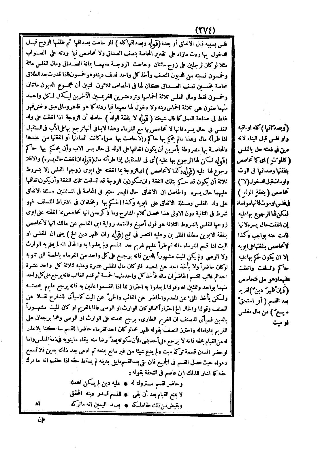وَحَاضِرٌ لِقَسْمِ مَتْرُوكٍ لَهُ ... عَلَيْهِ دَيْنٌ لَمْ يَكُنْ أَهْمَلَهُ