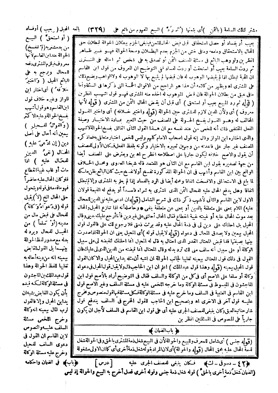 (بَابُ الضَّمَانِ) (قَوْلُهُ: جِنْسٌ) أَيْ شَامِلٌ لِلْمُعَرَّفِ وَلِلْبَيْعِ وَالْحَوَالَةِ لِأَنَّ فِي الْبَيْعِ شَغْلَ ذِمَّةِ الْمُشْتَرِي بِالْحَقِّ وَفِي الْحَوَالَةِ شَغْلًا لِذِمَّةِ الْمُحَالِ عَلَيْهِ بِحَقِّ الْمُحَالِ.