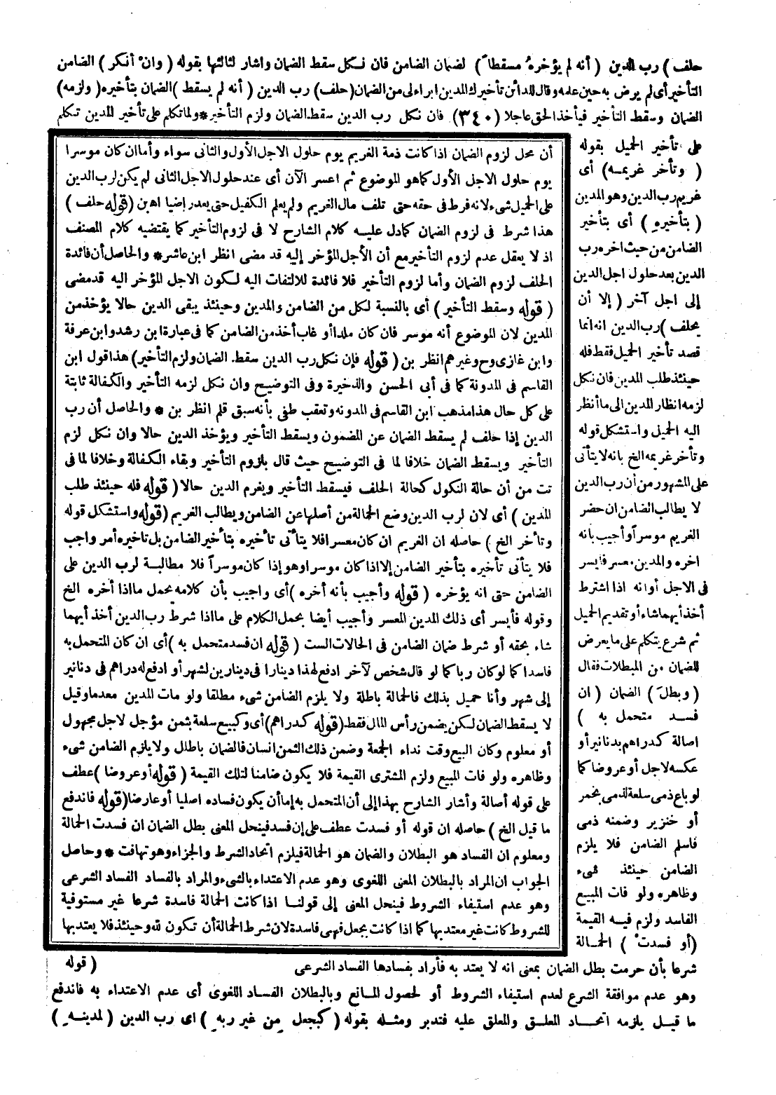 حَلَفَ) رَبُّ الدَّيْنِ (أَنَّهُ لَمْ يُؤَخِّرْهُ مُسْقِطًا) لِضَمَانِ الضَّامِنِ فَإِنَّ لِكُلٍّ سَقَطَ الضَّمَانُ وَأَشَارَ لِثَالِثِهَا بِقَوْلِهِ (وَإِنْ أَنْكَرَ) الضَّامِنُ التَّأْخِيرَ أَيْ لَمْ يَرْضَ بِهِ حِينَ عِلْمِهِ وَقَالَ لِلدَّائِنِ تَأْخِيرُكَ الْمَدِينَ إبْرَاءٌ لِي مِنْ الضَّمَانِ (حَلَفَ) رَبُّ الدَّيْنِ (أَنَّهُ لَمْ يُسْقِطْ) الضَّمَانَ بِتَأْخِيرِهِ (وَلَزِمَهُ) الضَّمَانُ وَسَقَطَ التَّأْخِيرُ فَيَأْخُذُ الْحَقَّ عَاجِلًا فَإِنْ نَكَلَ رَبُّ الدَّيْنِ سَقَطَ الضَّمَانُ وَلَزِمَ التَّأْخِيرُ