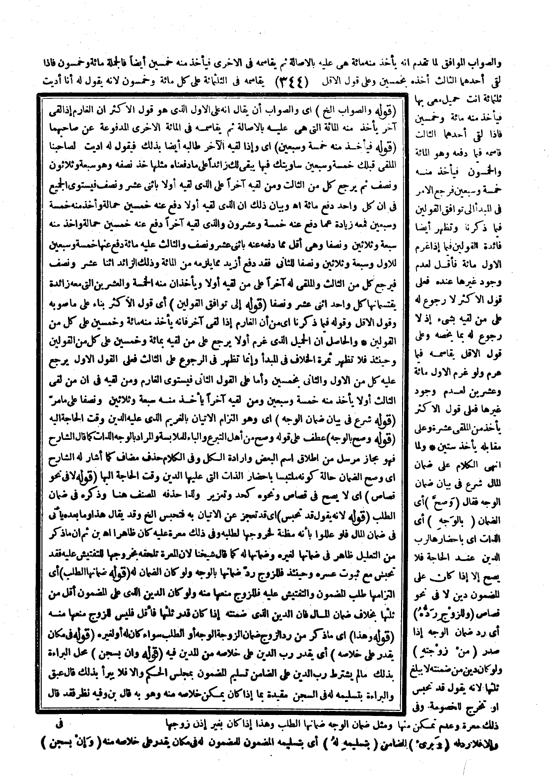 وَالصَّوَابُ الْمُوَافِقُ لِمَا تَقَدَّمَ أَنَّهُ يَأْخُذُ مِنْهُ مِائَةً هِيَ عَلَيْهِ بِالْأَصَالَةِ ثُمَّ يُقَاسِمُهُ فِي الْأُخْرَى فَيَأْخُذُ مِنْهُ خَمْسِينَ أَيْضًا فَالْجُمْلَةُ مِائَةٌ وَخَمْسُونَ فَإِذَا لَقِيَ أَحَدُهُمَا الثَّالِثَ أَخَذَهُ بِخَمْسِينَ وَعَلَى قَوْلٍ الْأَقَلُّ يُقَاسِمُهُ فِي الثَّلَثِمِائَةِ عَلَى كُلٍّ مِائَةٌ وَخَمْسُونَ؛ لِأَنَّهُ يَقُولُ لَهُ أَنَا أَدَّيْت ثَلَثَمِائَةٍ أَنْتَ حَمِيلٌ مَعِي بِهَا فَيَأْخُذُ مِنْهُ مِائَةً وَخَمْسِينَ فَإِذَا لَقِيَ أَحَدُهُمَا الثَّالِثَ قَاسَمَهُ فَمَا دَفَعَهُ وَهُوَ الْمِائَةُ وَالْخَمْسُونَ فَيَأْخُذُ مِنْهُ خَمْسَةً وَسَبْعِينَ فَرَجَعَ الْأَمْرُ فِي الْمَبْدَأِ إلَى تَوَافُقِ الْقَوْلَيْنِ فِيمَا ذَكَرْنَا وَتَظْهَرُ أَيْضًا فَائِدَةُ الْقَوْلَيْنِ فِيمَا إذَا غَرِمَ الْأَوَّلُ مِائَةً فَأَقَلَّ لِعَدَمِ وُجُودِ غَيْرِهَا عِنْدَهُ فَعَلَى قَوْلِ الْأَكْثَرِ لَا رُجُوعَ لَهُ عَلَى مَنْ لَقِيَهُ بِشَيْءٍ إذْ لَا رُجُوعَ لَهُ بِمَا يَخُصُّهُ وَعَلَى قَوْلِ الْأَقَلِّ يُقَاسِمُهُ فِيمَا غَرِمَ وَلَوْ غَرِمَ الْأَوَّلُ مِائَةً وَعِشْرِينَ لِعَدَمِ وُجُودِ غَيْرِهَا فَعَلَى قَوْلِ الْأَكْثَرِ يَأْخُذُ مِنْ الْمَلْقِيّ عَشْرَةً وَعَلَى مُقَابِلِهِ يَأْخُذُ سِتِّينَ
