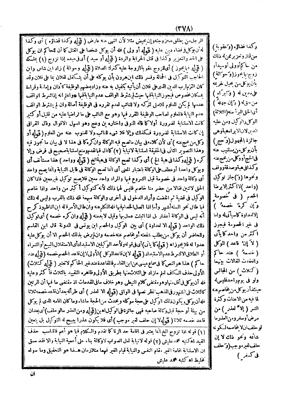 ـــــــــــــــــــــــــــــQالرَّجُلُ مَنْ يُطَلِّقُ عَنْهُ زَوْجَتَهُ، وَإِنْ بِحَيْضٍ مَثَلًا؛ لِأَنَّ النَّهْيَ عَنْهُ عَارِضٌ (قَوْلُهُ وَكَذَا قَضَاؤُهُ) أَيْ وَكَذَا لَهُ أَنْ يُوَكِّلَ فِي قَضَاءِ دَيْنٍ عَلَيْهِ (قَوْلُهُ أَوْ وَلِيٌّ) فَلَهُ أَنْ يُوَكِّلَ شَخْصًا عَلَى الْقَتْلِ كَمَا أَنَّ لِلْحَاكِمِ أَنْ يُوَكِّلَ عَلَى الْحَدِّ وَالتَّعْزِيرِ وَكَذَا فِي قَتْلِ الْحِرَابَةِ وَالرِّدَّةِ (قَوْلُهُ أَوْ سَيِّدٌ) أَيْ فِي عَبْدِهِ إذَا تَزَوَّجَ بِمِلْكِهِ (قَوْلُهُ فِيمَا يَجُوزُ) أَيْ لِلزَّوْجِ عُقُوبَةُ الزَّوْجَةِ عَلَيْهِ كَتَرْكِ الصَّلَاةِ.