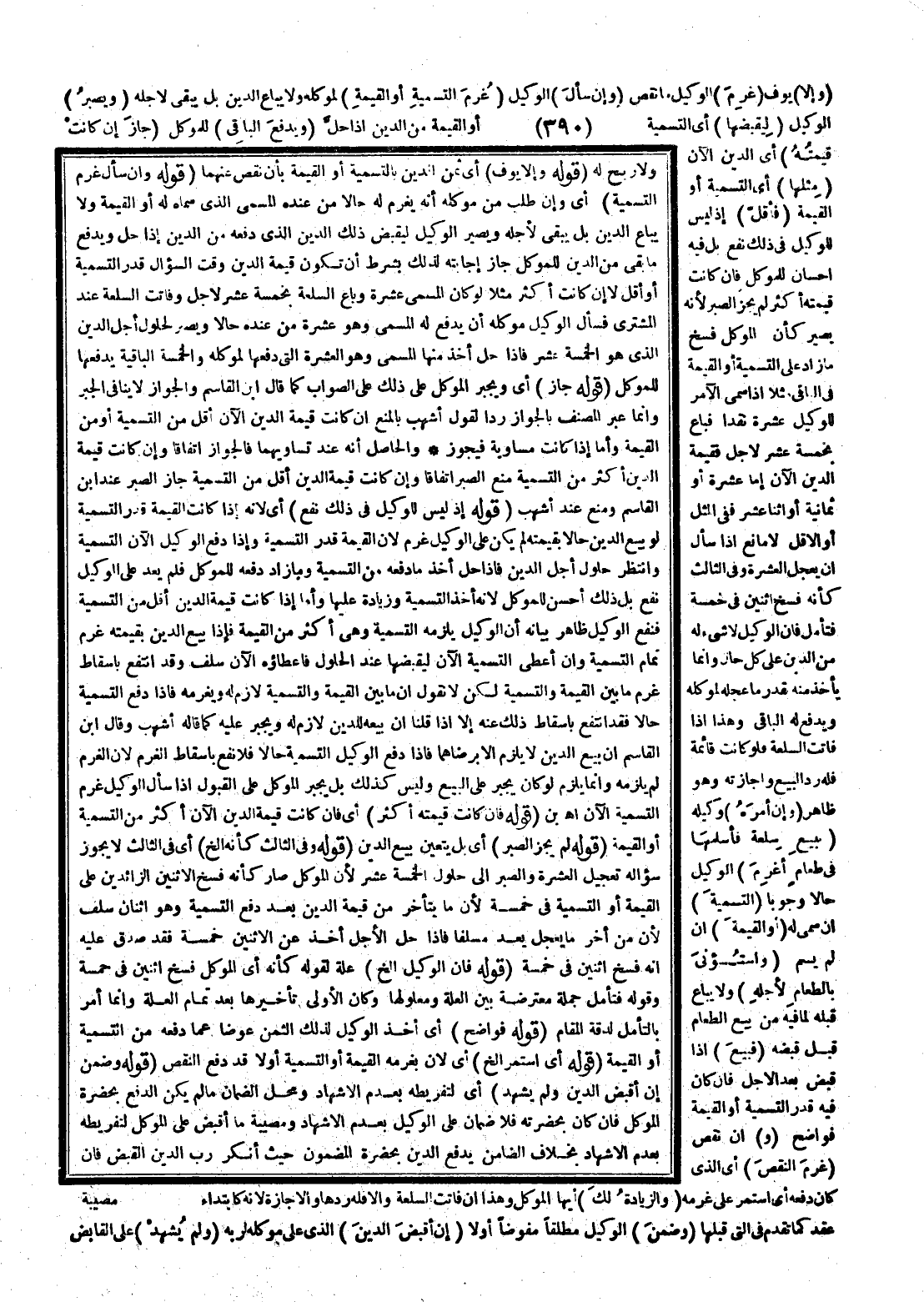 (وَإِلَّا) يُوَفِّ (غَرِمَ) الْوَكِيلُ مَا نَقَصَ (وَإِنْ سَأَلَ) الْوَكِيلُ (غَرِمَ التَّسْمِيَةَ أَوْ الْقِيمَةَ) لِمُوَكِّلِهِ وَلَا يُبَاعُ الدَّيْنُ بَلْ يَبْقَى لِأَجْلِهٍ (وَيَصْبِرُ) الْوَكِيلُ (لِيَقْبِضَهَا) أَيْ التَّسْمِيَةَ أَوْ الْقِيمَةَ مِنْ الدَّيْنِ إذَا حَلَّ (وَيَدْفَعُ الْبَاقِيَ) لِلْمُوَكِّلِ (جَازَ إنْ كَانَتْ قِيمَتُهُ) أَيْ الدَّيْنِ الْآنَ (مِثْلَهَا) أَيْ التَّسْمِيَةِ أَوْ الْقِيمَةِ (فَأَقَلَّ) إذْ لَيْسَ لِلْوَكِيلِ فِي ذَلِكَ نَفْعٌ بَلْ فِيهِ إحْسَانٌ لِلْمُوَكِّلِ، فَإِنْ كَانَتْ قِيمَتُهُ أَكْثَرَ لَمْ يَجُزْ الصَّبْرُ؛ لِأَنَّهُ يَصِيرُ كَأَنَّ الْمُوَكِّلَ فَسَخَ مَا زَادَ عَلَى التَّسْمِيَةِ أَوْ الْقِيمَةِ فِي الْبَاقِي مَثَلًا إذَا سَمَّى الْآمِرُ لِلْوَكِيلِ عَشَرَةً نَقْدًا فَبَاعَ بِخَمْسَةَ عَشَرَ لِأَجَلٍ فَقِيمَةُ الدَّيْنِ الْآنَ إمَّا عَشَرَةٌ أَوْ ثَمَانِيَةٌ أَوْ اثْنَا عَشَرَ فَفِي الْمِثْلِ أَوْ الْأَقَلِّ لَا مَانِعَ إذَا سَأَلَ أَنْ يُعَجِّلَ الْعَشَرَةَ وَفِي الثَّالِثِ كَأَنَّهُ فَسَخَ اثْنَيْنِ فِي خَمْسَةٍ فَتَأَمَّلْ فَإِنَّ الْوَكِيلَ لَا شَيْءَ لَهُ مِنْ الدَّيْنِ عَلَى كُلِّ حَالٍ وَإِنَّمَا يَأْخُذُ مِنْهُ بِقَدْرِ مَا عَجَّلَهُ لِمُوَكِّلِهِ وَيَدْفَعُ لَهُ الْبَاقِي وَهَذَا إذَا فَاتَتْ السِّلْعَةُ فَلَوْ كَانَتْ قَائِمَةً فَلَهُ رَدُّ الْبَيْعِ وَإِجَازَتُهُ وَهُوَ ظَاهِرٌ