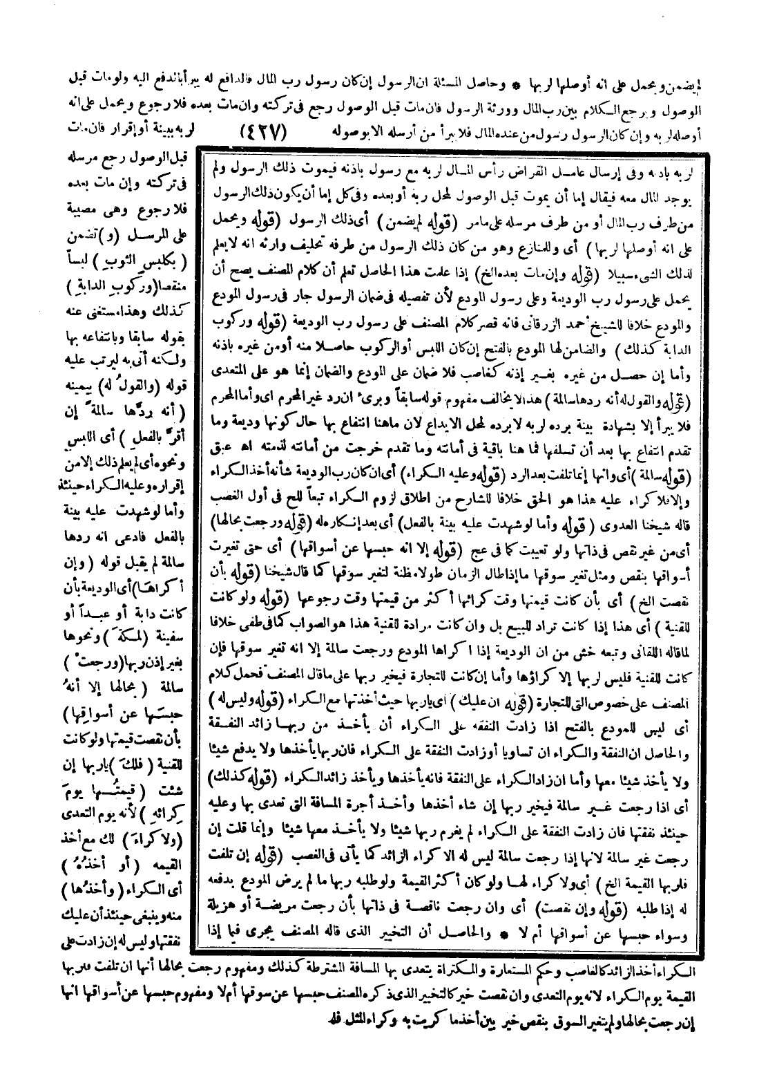 ـــــــــــــــــــــــــــــQلِرَبِّهِ بِإِذْنِهِ وَفِي إرْسَالِ عَامِلِ الْقِرَاضِ رَأْسَ الْمَالِ لِرَبِّهِ مَعَ رَسُولٍ بِإِذْنِهِ فَيَمُوتُ ذَلِكَ الرَّسُولُ وَلَمْ يُوجَدْ الْمَالُ مَعَهُ فَيُقَالُ إمَّا أَنْ يَمُوتَ قَبْلَ الْوُصُولِ لِمَحِلِّ رَبِّهِ، أَوْ بَعْدَهُ وَفِي كُلٍّ إمَّا أَنْ يَكُونَ ذَلِكَ الرَّسُولُ مِنْ طَرَفِ رَبِّ الْمَالِ، أَوْ مِنْ طَرَفِ مُرْسِلِهِ عَلَى مَا مَرَّ (قَوْلُهُ لَمْ يَضْمَنْ) أَيْ ذَلِكَ الرَّسُولُ (قَوْلُهُ وَيُحْمَلُ عَلَى أَنَّهُ أَوْصَلَهَا لِرَبِّهَا) أَيْ وَلِلْمُنَازِعِ، وَهُوَ مَنْ كَانَ ذَلِكَ الرَّسُولُ مِنْ طَرَفِهِ تَحْلِيفُ وَارِثِهِ أَنَّهُ لَا يَعْلَمُ لِذَلِكَ الشَّيْءِ سَبِيلًا (قَوْلُهُ، وَإِنْ مَاتَ بَعْدَهُ إلَخْ) إذَا عَلِمْتَ هَذَا الْحَاصِلَ تَعْلَمُ أَنَّ كَلَامَ الْمُصَنِّفِ يَصِحُّ أَنْ يُحْمَلَ عَلَى رَسُولِ رَبِّ الْوَدِيعَةِ وَعَلَى رَسُولِ الْمُودَعِ؛ لِأَنَّ تَفْصِيلَهُ فِي ضَمَانِ الرَّسُولِ جَارٍ فِي رَسُولِ الْمُودَعِ، وَالْمُودِعِ خِلَافًا لِلشَّيْخِ أَحْمَدَ الزَّرْقَانِيِّ فَإِنَّهُ قَصَرَ كَلَامَ الْمُصَنِّفِ عَلَى رَسُولِ رَبِّ الْوَدِيعَةِ.