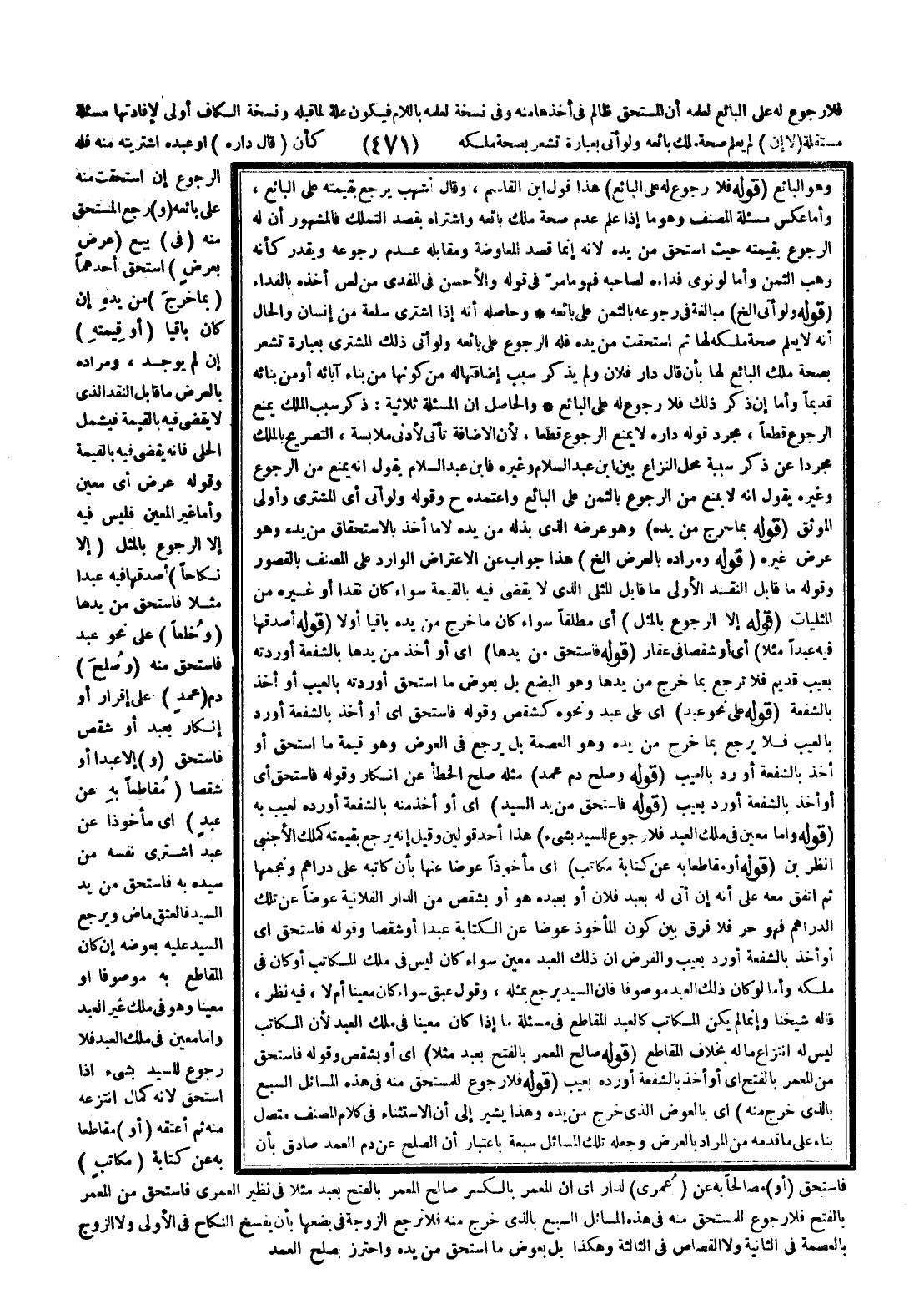 وَالْحَاصِلُ أَنَّ الْمَسْأَلَةَ ثُلَاثِيَّةٌ: ذِكْرُ سَبَبِ الْمِلْكِ يَمْنَعُ الرُّجُوعَ قَطْعًا، مُجَرَّدُ قَوْلِهِ دَارُهُ لَا يَمْنَعُ الرُّجُوعَ قَطْعًا؛ لِأَنَّ الْإِضَافَةَ تَأْتِي لِأَدْنَى مُلَابَسَةٍ، التَّصْرِيحُ بِالْمِلْكِ مُجَرَّدًا عَنْ ذِكْرِ سَبَبِهِ مَحَلُّ النِّزَاعِ بَيْنَ ابْنِ عَبْدِ السَّلَامِ وَغَيْرِهِ فَابْنُ عَبْدِ السَّلَامِ يَقُولُ إنَّهُ يُمْنَعُ مِنْ الرُّجُوعِ وَغَيْرُهُ يَقُولُ إنَّهُ لَا يُمْنَعُ مِنْ الرُّجُوعِ بِالثَّمَنِ عَلَى الْبَائِعِ وَاعْتَمَدَهُ ح وَقَوْلُهُ وَلَوْ أَتَى أَيْ الْمُشْتَرِي، وَأَوْلَى الْمُوَثِّقُ.