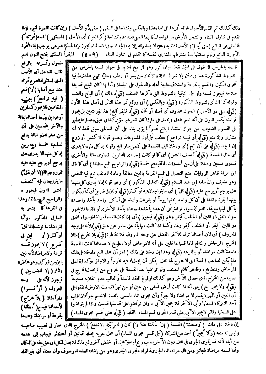 وَأَمَّا قَسْمُهُ مُرَاضَاةً فَجَائِزٌ وَمَنْ قَالَ مُرَادُهُ الْمَاءُ الْجَارِي فَالْمُرَادُ بِالْمَجْرَى الْجَارِي، وَهُوَ مِنْ إضَافَةِ الصِّفَةِ لِلْمَوْصُوفِ وَأَنَّ مَعْنَاهُ أَيْ بِغَيْرِ الْقِلْدِ