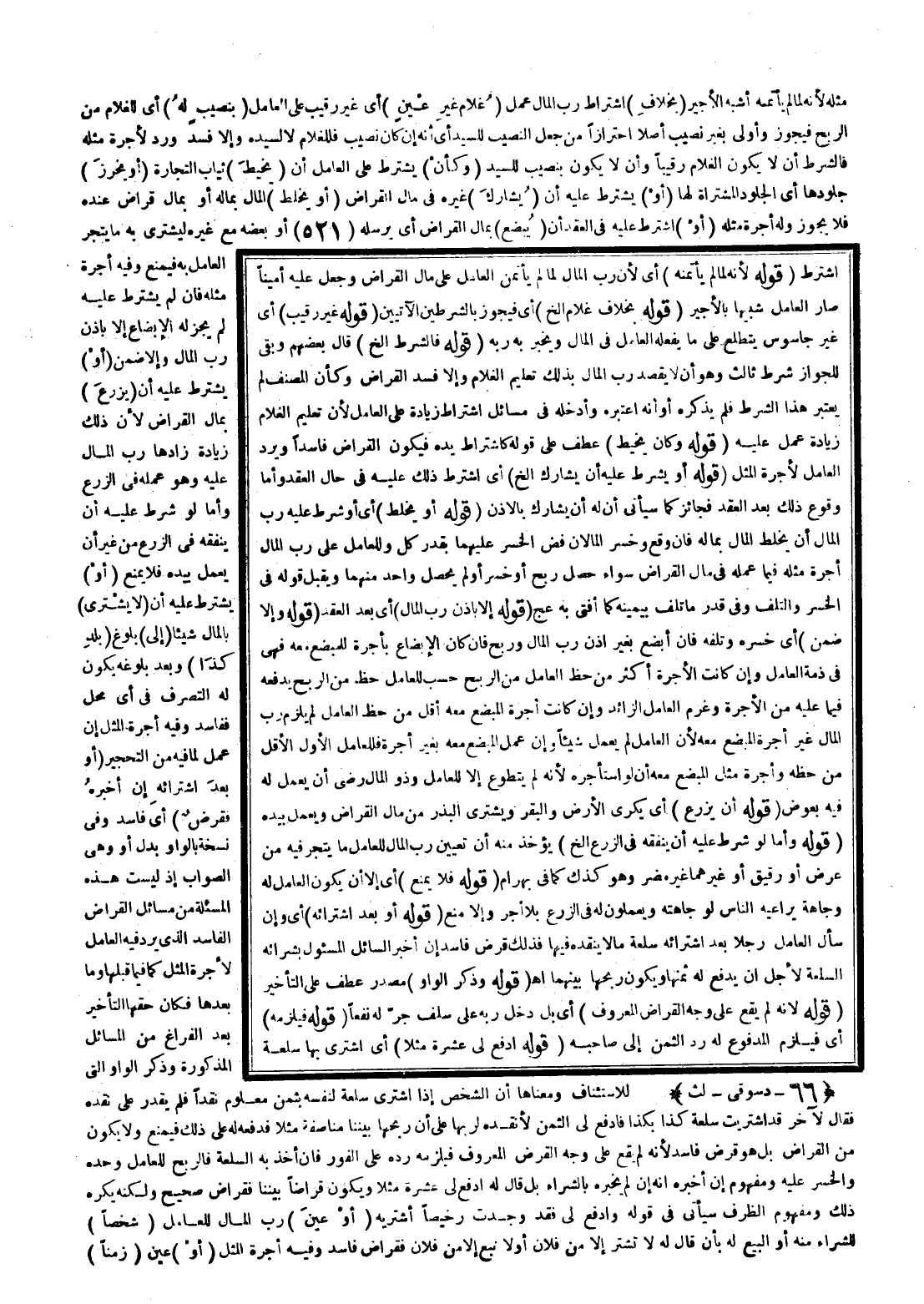 (قَوْلُهُ وَذِكْرَ الْوَاوِ) مَصْدَرٌ عُطِفَ عَلَى التَّأْخِيرِ (قَوْلُهُ؛ لِأَنَّهُ لَمْ يَقَعْ عَلَى وَجْهِ الْقِرَاضِ الْمَعْرُوفِ) أَيْ بَلْ دَخَلَ رَبُّهُ عَلَى سَلَفٍ جَرَّ لَهُ نَفْعًا (قَوْلُهُ فَيَلْزَمُهُ) أَيْ فَيَلْزَمُ الْمَدْفُوعُ لَهُ رَدُّ الثَّمَنِ إلَى صَاحِبِهِ (قَوْلُهُ ادْفَعْ لِي عَشَرَةً مَثَلًا) أَيْ اشْتَرَى بِهَا سِلْعَةً