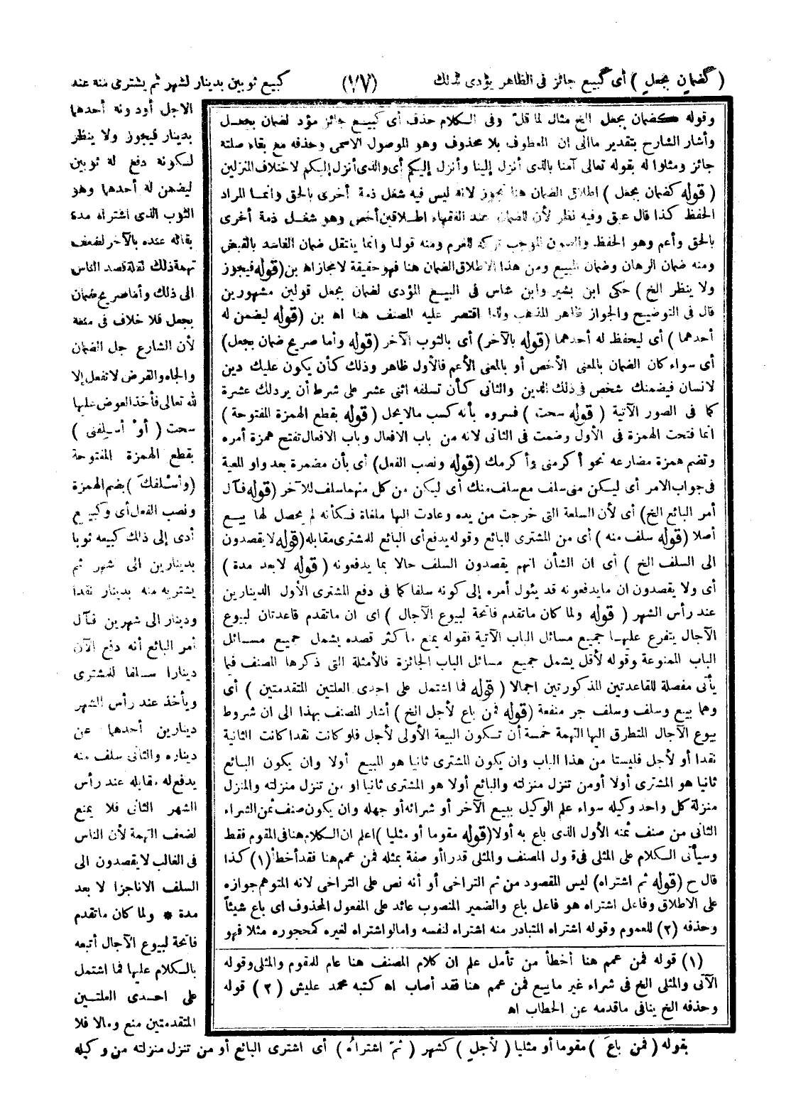 وَلَمَّا كَانَ مَا تَقَدَّمَ فَاتِحَةٌ لِبُيُوعِ الْآجَالِ أَتْبَعَهُ بِالْكَلَامِ عَلَيْهَا فَمَا اشْتَمَلَ عَلَى إحْدَى الْعِلَّتَيْنِ الْمُتَقَدِّمَتَيْنِ مَنَعَ وَمَا لَا فَلَا بِقَوْلِهِ (فَمَنْ بَاعَ) مُقَوَّمًا أَوْ مِثْلِيًّا (لِأَجَلٍ) كَشَهْرٍ (ثُمَّ اشْتَرَاهُ) أَيْ اشْتَرَى الْبَائِعُ أَوْ مَنْ تَنَزَّلَ مَنْزِلَتَهُ مِنْ وَكِيلِهِ
