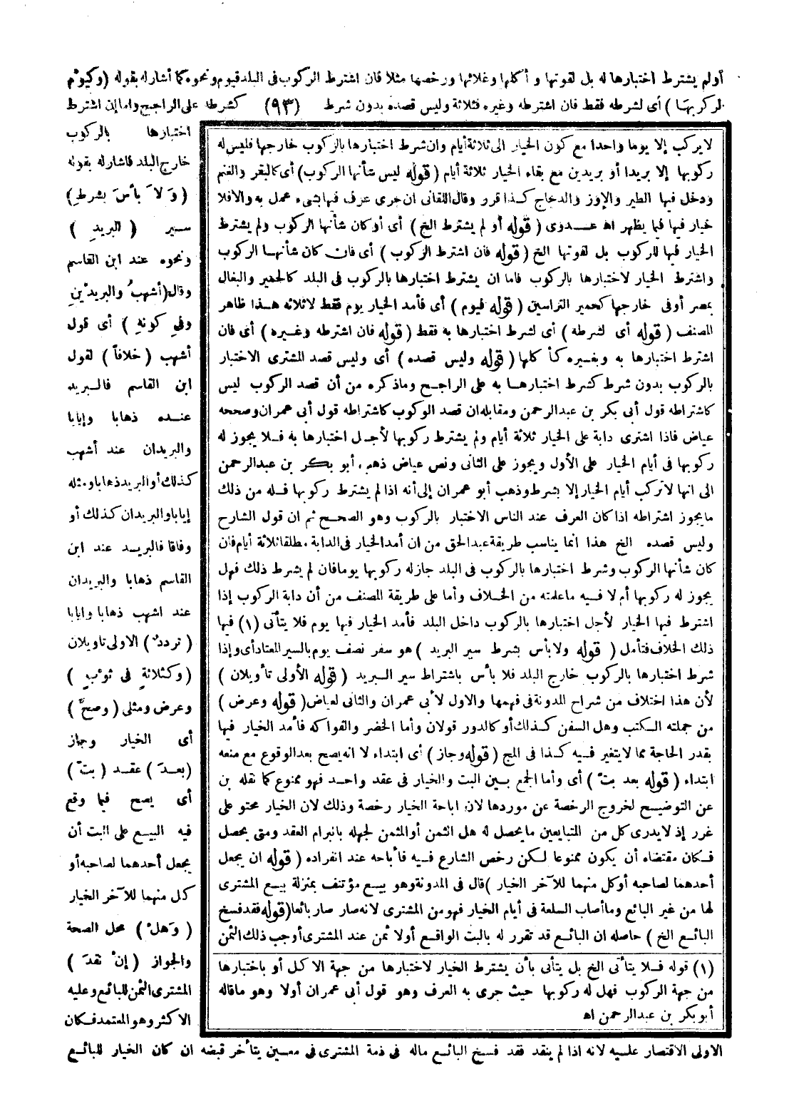 أَوْ لَمْ يَشْتَرِطْ اخْتِبَارَهَا لَهُ بَلْ لِقُوَّتِهَا وَأَكْلِهَا وَغَلَائِهَا وَرُخْصِهَا مَثَلًا، فَإِنْ اشْتَرَطَ الرُّكُوبَ فِي الْبَلَدِ فَيَوْمٌ وَنَحْوُهُ كَمَا أَشَارَ لَهُ بِقَوْلِهِ (وَكَيَوْمٍ لِرُكُوبِهَا) أَيْ لِشَرْطِهِ فَقَطْ، فَإِنْ اشْتَرَطَهُ وَغَيْرَهُ فَثَلَاثَةٌ وَلَيْسَ قَصْدُهُ بِدُونِ شَرْطٍ كَشَرْطِهِ عَلَى الرَّاجِحِ، وَأَمَّا إنْ اشْتَرَطَ اخْتِبَارَهَا بِالرُّكُوبِ خَارِجَ الْبَلَدِ فَأَشَارَ لَهُ بِقَوْلِهِ (وَلَا بَأْسَ بِشَرْطِ) سَيْرِ (الْبَرِيدِ) وَنَحْوِهِ عِنْدَ ابْنِ الْقَاسِمِ وَقَالَ (أَشْهَبُ وَالْبَرِيدَيْنِ وَفِي كَوْنِهِ) أَيْ قَوْلِ أَشْهَبَ (خِلَافًا) لِقَوْلِ ابْنِ الْقَاسِمِ، فَالْبَرِيدُ عِنْدَهُ ذَهَابًا وَإِيَابًا وَالْبَرِيدَانِ عِنْدَ أَشْهَبَ كَذَلِكَ، أَوْ الْبَرِيدُ ذَهَابًا وَمِثْلُهُ إيَابًا وَالْبَرِيدَانِ كَذَلِكَ، أَوْ وِفَاقًا فَالْبَرِيدُ عِنْدَ ابْنِ الْقَاسِمِ ذَهَابًا وَالْبَرِيدَانِ عِنْدَ أَشْهَبَ ذَهَابًا وَإِيَابًا (تَرَدُّدٌ) الْأَوْلَى تَأْوِيلَانِ. .