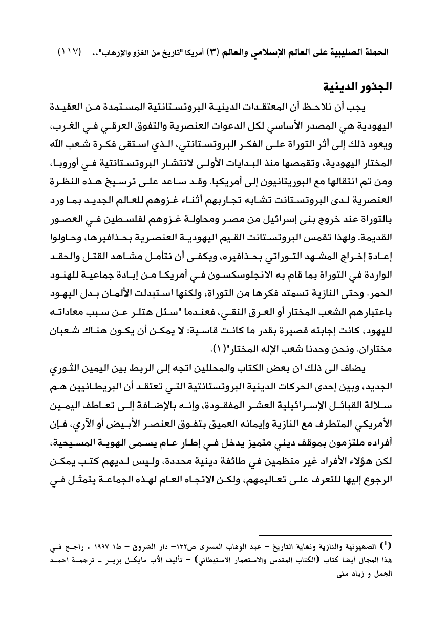 (¬1) الصهيونية والنازية ونهاية التاريخ - عبد الوهاب المسرى ص132 - دار الشروق - ط1 1997. راجع في هذا المجال أيضا كتاب (الكتاب المقدس والاستعمار الاستيطاني) - تأليف الأب مايكل بزير ـ ترجمة احمد الجمل و زياد منى