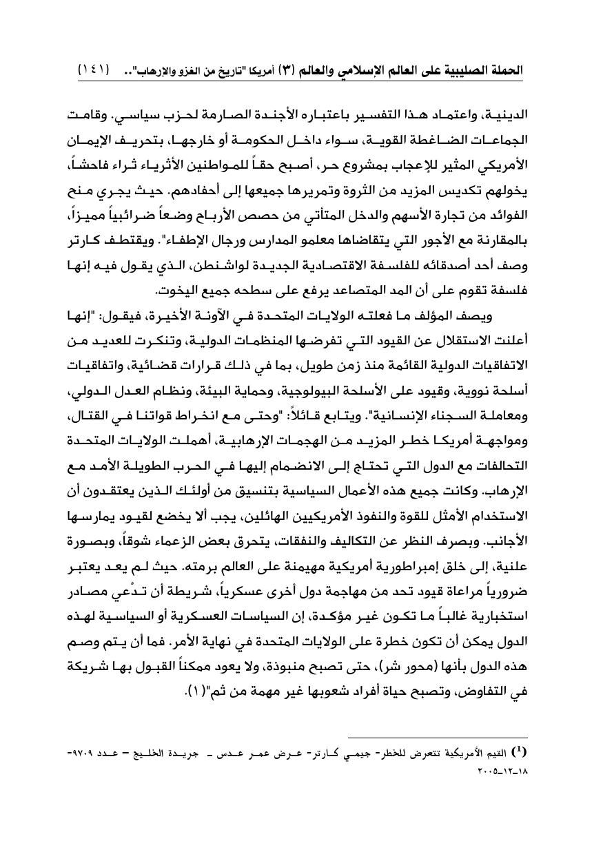 (¬1) القيم الأمريكية تتعرض للخطر- جيمي كارتر- عرض عمر عدس ـ جريدة الخليج - عدد 9709 - 18ـ12ـ2005