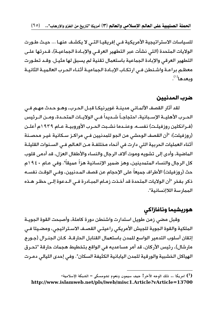 للسياسات الاستراتيجية الأمريكية في إفريقيا التي لا يكشف عنها ... حيث طورت الولايات المتحدة (التي نشأت عبر التطهير العرقي والإبادة الجماعية)، قدرتها على التطهير العرقي والإبادة الجماعية باستعمال تقنية لم يسبق لها مثيل. وقد تطورت معظم براعة واشنطن في ارتكاب الإبادة الجماعية أثناء الحرب العالمية الثانية وبعدها (¬1).