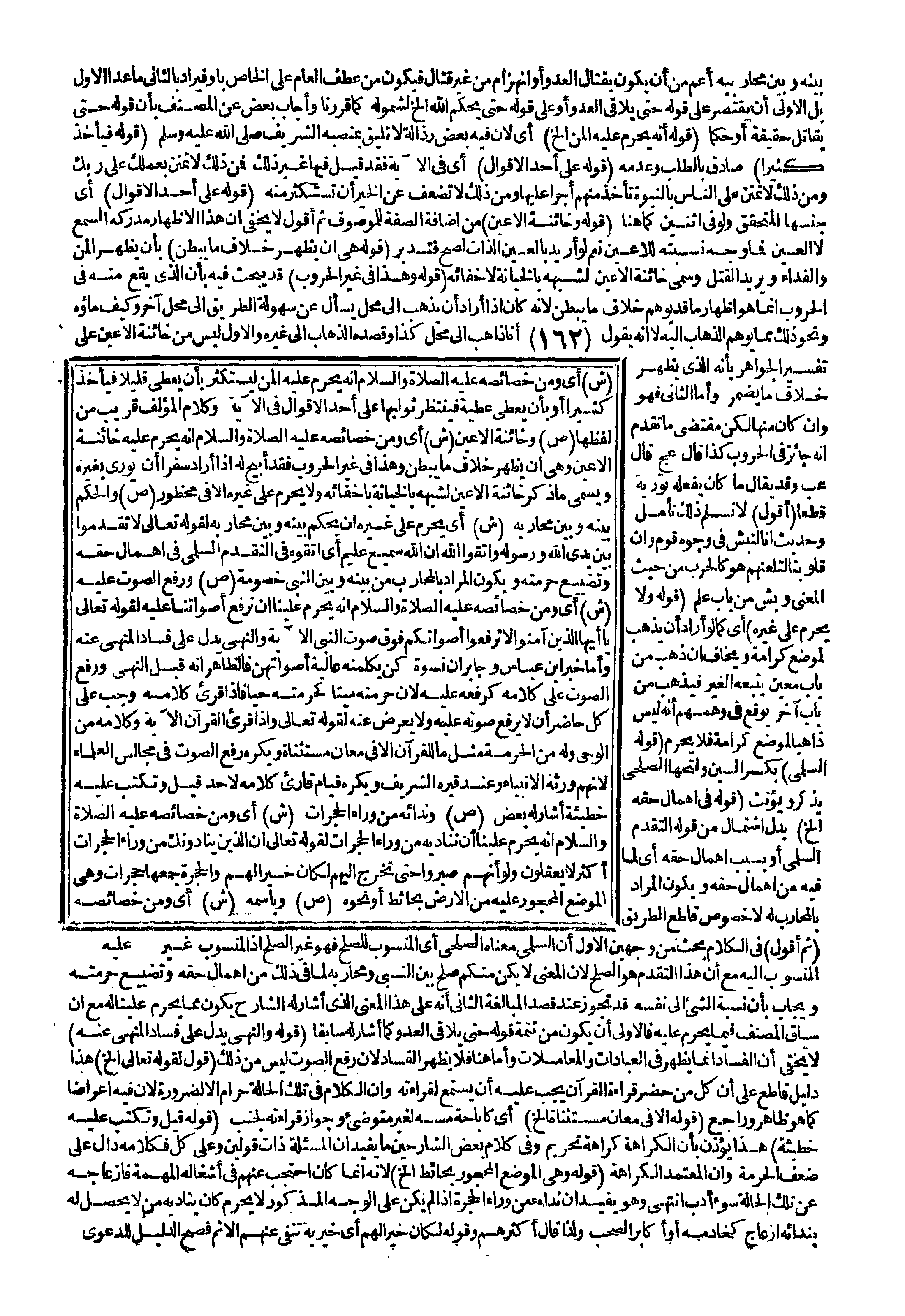 ش) أَيْ وَمِنْ خَصَائِصِهِ - عَلَيْهِ الصَّلَاةُ وَالسَّلَامُ - أَنَّهُ يَحْرُمُ عَلَيْهِ الْمَنُّ لِيَسْتَكْثِرَ بِأَنْ يُعْطِيَ قَلِيلًا فَيَأْخُذَ كَثِيرًا أَوْ بِأَنْ يُعْطِيَ عَطِيَّةً فَيَنْتَظِرَ ثَوَابَهَا عَلَى أَحَدِ الْأَقْوَالِ فِي الْآيَةِ، وَكَلَامُ الْمُؤَلِّفِ قَرِيبٌ مِنْ لَفْظِهَا.