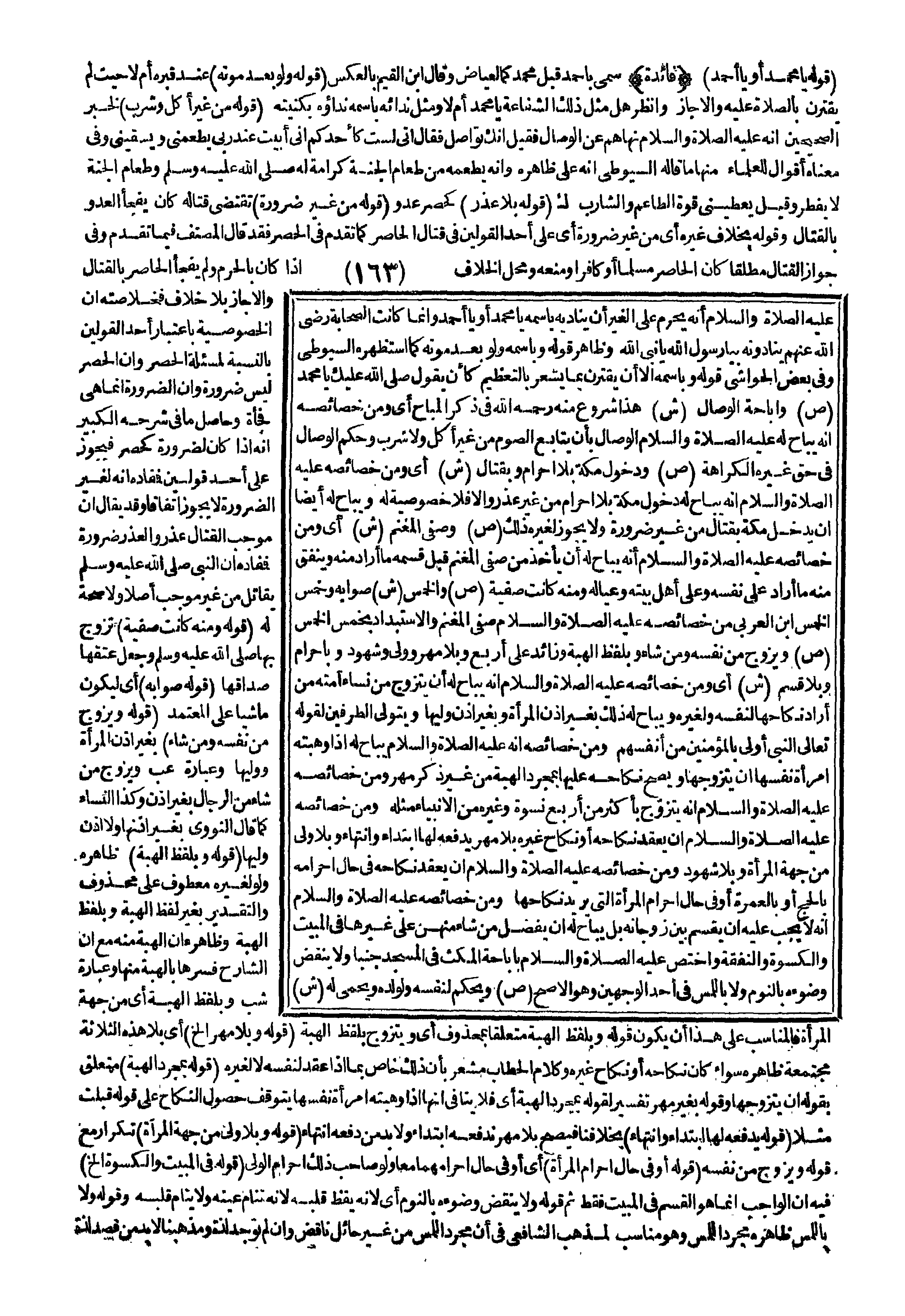 - عَلَيْهِ الصَّلَاةُ وَالسَّلَامُ - أَنَّهُ يَحْرُمُ عَلَى الْغَيْرِ أَنْ يُنَادِيَهُ بِاسْمِهِ يَا مُحَمَّدُ أَوْ يَا أَحْمَدُ وَإِنَّمَا كَانَتْ الصَّحَابَةُ - رَضِيَ اللَّهُ عَنْهُمْ - يُنَادُونَهُ بِيَا رَسُولَ اللَّهِ يَا نَبِيَّ اللَّهِ وَظَاهِرُ قَوْلِهِ وَبِاسْمِهِ، وَلَوْ بَعْدَ مَوْتِهِ كَمَا اسْتَظْهَرَهُ السُّيُوطِيّ وَفِي بَعْضِ الْحَوَاشِي قَوْلُهُ وَبِاسْمِهِ إلَّا أَنْ يَقْتَرِنَ بِمَا يُشْعِرُ بِالتَّعْظِيمِ كَأَنْ يَقُولَ صَلَّى اللَّهُ عَلَيْك يَا مُحَمَّدُ.