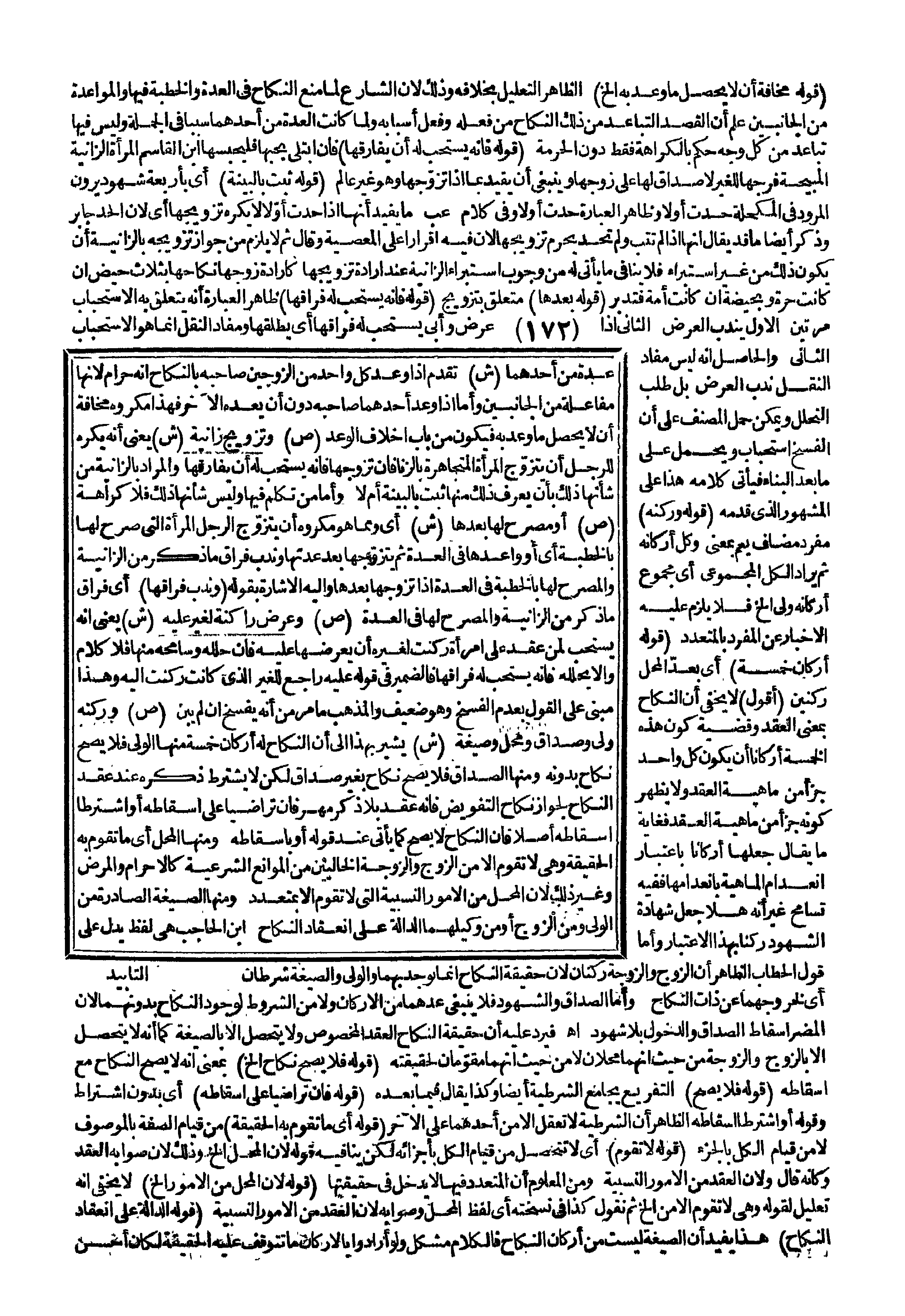 وَأَمَّا قَوْلُ الْحَطَّابِ الظَّاهِرُ أَنَّ الزَّوْجَ وَالزَّوْجَةَ رُكْنَانِ؛ لِأَنَّ حَقِيقَةَ النِّكَاحِ إنَّمَا يُوجَدُ بِهِمَا وَالْوَلِيُّ وَالصِّيغَةُ شَرْطَانِ أَيْ لِخُرُوجِهِمَا عَنْ ذَاتِ النِّكَاحِ. وَأَمَّا الصَّدَاقُ وَالشُّهُودُ فَلَا يَنْبَغِي عَدُّهُمَا مِنْ الْأَرْكَانِ وَلَا مِنْ الشُّرُوطِ لِوُجُودِ النِّكَاحِ بِدُونِهِمَا؛ لِأَنَّ الْمُضِرَّ إسْقَاطُ الصَّدَاقِ وَالدُّخُولُ بِلَا شُهُودٍ اهـ فَيَرُدُّ عَلَيْهِ أَنَّ حَقِيقَةَ النِّكَاحِ الْعَقْدُ الْمَخْصُوصُ وَلَا يَتَحَصَّلُ إلَّا بِالصِّيغَةِ كَمَا أَنَّهُ لَا يَتَحَصَّلُ إلَّا بِالزَّوْجِ وَالزَّوْجَةِ مِنْ حَيْثُ إنَّهُمَا مَحَلَّانِ لَا مِنْ حَيْثُ إنَّهُمَا مُقَوِّمَانِ لِحَقِيقَتِهِ (قَوْلُهُ فَلَا يَصِحُّ نِكَاحٌ إلَخْ) بِمَعْنَى أَنَّهُ لَا يَصِحُّ النِّكَاحُ مَعَ إسْقَاطِهِ (قَوْلُهُ فَلَا يَصِحُّ) التَّفْرِيعُ يُجَامِعُ الشَّرْطِيَّةَ أَيْضًا وَكَذَا يُقَالُ فِيمَا بَعْدَهُ (قَوْلُهُ، فَإِنْ تَرَاضَيَا عَلَى إسْقَاطِهِ) أَيْ بِدُونِ اشْتِرَاطِ وَقَوْلُهُ أَوْ اشْتَرَطَا إسْقَاطَهُ الظَّاهِرُ أَنَّ الشَّرْطِيَّةَ لَا تُعْقَلُ إلَّا مِنْ أَحَدِهِمَا عَلَى الْآخَرِ (قَوْلُهُ أَيْ مَا تَقُومُ بِهِ الْحَقِيقَةُ) مِنْ قِيَامِ الصِّفَةِ بِالْمَوْصُوفِ لَا مِنْ قِيَامِ الْكُلِّ بِالْجُزْءِ (قَوْلُهُ لَا تَقُومُ) أَيْ لَا تَتَحَصَّلُ مِنْ قِيَامِ الْكُلِّ بِأَجْزَائِهِ لَكِنْ يُنَافِيهِ قَوْلُهُ؛ لِأَنَّ الْمَحَلَّ إلَخْ وَذَلِكَ؛ لِأَنَّ صَوَابَهُ الْعَقْدُ وَكَأَنَّهُ قَالَ وَلِأَنَّ الْعَقْدَ مِنْ الْأُمُورِ النِّسْبِيَّةِ وَمِنْ الْمَعْلُومِ أَنَّ الْمُتَعَدِّدَ فِيهَا لَا يَدْخُلُ فِي حَقِيقَتِهَا.
