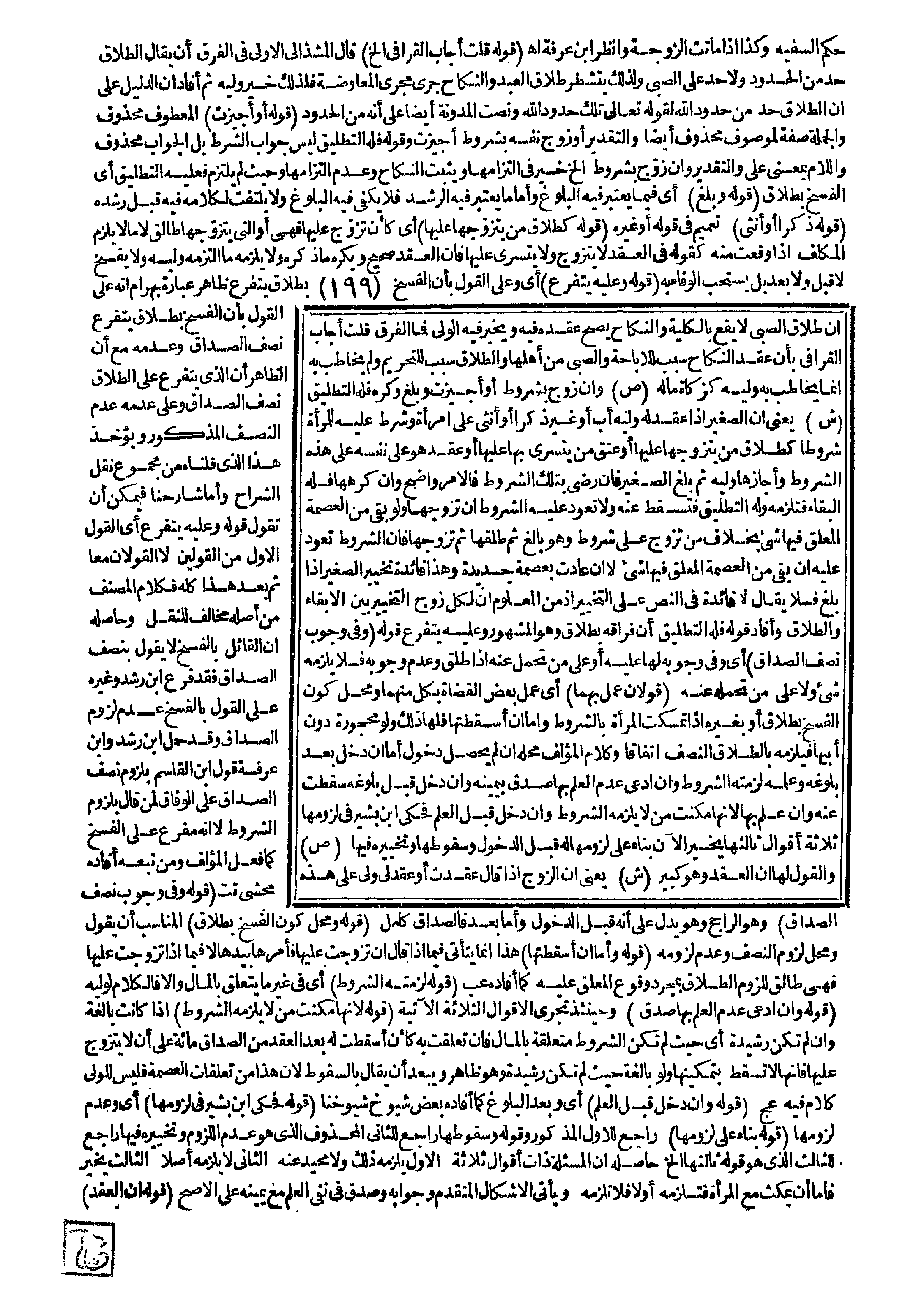 أَنَّ طَلَاقَ الصَّبِيِّ لَا يَقَعُ بِالْكُلِّيَّةِ وَالنِّكَاحُ يَصِحُّ عَقْدُهُ فِيهِ وَيُخَيَّرُ فِيهِ الْوَلِيُّ فَمَا الْفَرْقُ قُلْت أَجَابَ الْقَرَافِيُّ بِأَنَّ عَقْدَ النِّكَاحِ سَبَبٌ لِلْإِبَاحَةِ وَالصَّبِيُّ مِنْ أَهْلِهَا وَالطَّلَاقُ سَبَبٌ لِلتَّحْرِيمِ وَلَمْ يُخَاطَبْ بِهِ إنَّمَا يُخَاطَبُ بِهِ وَلِيُّهُ كَزَكَاةِ مَالِهِ.