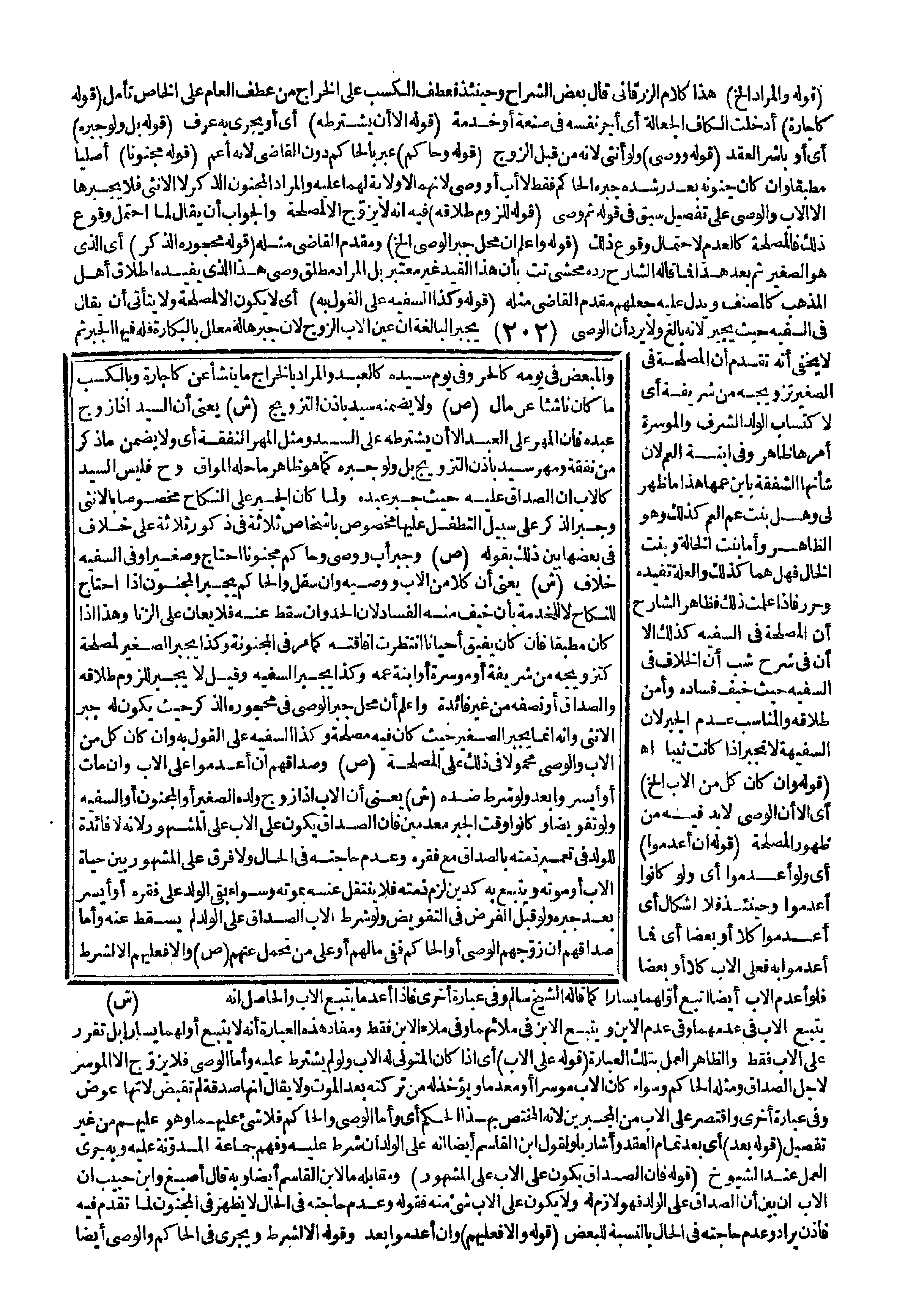 (قَوْلُهُ وَوَصِيٍّ) ، وَلَوْ أُنْثَى؛ لِأَنَّهُ مِنْ قِبَلِ الزَّوْجِ (قَوْلُهُ وَحَاكِمٍ) عَبَّرَ بِالْحَاكِمِ دُونَ الْقَاضِي؛ لِأَنَّهُ أَعَمُّ (قَوْلُهُ مَجْنُونًا) أَصْلِيًّا مُطْبِقًا، وَإِنْ كَانَ جُنُونُهُ بَعْدَ رُشْدِهِ جَبَرَهُ الْحَاكِمُ فَقَطْ لَا أَبٌ أَوْ وَصِيٌّ؛ لِأَنَّهُمَا لَا وِلَايَةَ لَهُمَا عَلَيْهِ وَالْمُرَادُ الْمَجْنُونُ الذَّكَرُ لَا الْأُنْثَى فَلَا يَجْبُرُهَا إلَّا الْأَبُ وَالْوَصِيُّ عَلَى تَفْصِيلٍ سَبَقَ فِي قَوْلِهِ ثُمَّ وَصِيٌّ (قَوْلُهُ لِلُزُومِ طَلَاقِهِ) فِيهِ أَنَّهُ لَا يُزَوِّجُ إلَّا لِمَصْلَحَةٍ وَالْجَوَابُ أَنْ يُقَالَ لَمَّا اُحْتُمِلَ وُقُوعُ ذَلِكَ فَالْمَصْلَحَةُ كَالْعَدَمِ لِاحْتِمَالِ وُقُوعِ ذَلِكَ (قَوْلُهُ: وَاعْلَمْ أَنَّ مَحَلَّ جَبْرِ الْوَصِيِّ إلَخْ) وَمُقَدَّمُ الْقَاضِي مِثْلُهُ (قَوْلُهُ مَحْجُورُهُ الذَّكَرُ) أَيْ الَّذِي هُوَ الصَّغِيرُ ثُمَّ بَعْدَ هَذَا فَمَا قَالَهُ الشَّارِحُ رَدَّهُ مُحَشِّي تت بِأَنَّ هَذَا الْقَيْدَ غَيْرُ مُعْتَبَرٍ بَلْ الْمُرَادُ مُطْلَقُ وَصِيٍّ هَذَا الَّذِي يُفِيدُهُ إطْلَاقُ أَهْلِ الْمَذْهَبِ كَالْمُصَنِّفِ وَيَدُلُّ عَلَيْهِ جَعْلُهُمْ مُقَدَّمَ الْقَاضِي مِثْلَهُ (قَوْلُهُ وَكَذَا السَّفِيهُ عَلَى الْقَوْلِ بِهِ) أَيْ لَا يَكُونُ إلَّا لِمَصْلَحَةٍ وَلَا يَتَأَتَّى أَنْ يُقَالَ فِي السَّفِيهِ حَيْثُ يُجْبَرُ؛ لِأَنَّهُ بَالِغٌ وَلَا يَرُدُّ أَنَّ الْوَصِيَّ يُجْبِرُ الْبَالِغَةَ إنْ عَيَّنَ الْأَبُ الزَّوْجَ؛ لِأَنَّ جَبْرَهَا لَهُ مُعَلَّلٌ بِالْبَكَارَةِ فَلَهُ فِيهَا الْجَبْرُ ثُمَّ لَا يَخْفَى أَنَّهُ تَقَدَّمَ أَنَّ الْمَصْلَحَةَ فِي الصَّغِيرِ تَزْوِيجُهُ مِنْ شَرِيفَةٍ أَيْ لِاكْتِسَابِ الْوَلَدِ الشَّرَفَ وَالْمُوسِرَةُ أَمْرُهَا ظَاهِرٌ وَفِي ابْنَةِ الْعَمِّ؛ لِأَنَّ شَأْنَهَا الشَّفَقَةُ بِابْنِ عَمِّهَا هَذَا مَا ظَهَرَ لِي وَهَلْ بِنْت عَمِّ الْعَمِّ كَذَلِكَ وَهُوَ الظَّاهِرُ. وَأَمَّا بِنْتُ الْخَالَةِ وَبِنْتُ الْخَالِ فَهَلْ هُمَا كَذَلِكَ وَالْعِلَّةُ تُفِيدُهُ وَحُرِّرَ فَإِذَا عَلِمْت ذَلِكَ فَظَاهِرُ الشَّارِحِ أَنَّ الْمَصْلَحَةَ فِي السَّفِيهِ كَذَلِكَ إلَّا أَنَّ فِي شَرْحِ شب أَنَّ الْخِلَافَ فِي السَّفِيهِ حَيْثُ خِيفَ فَسَادُهُ وَأُمِنَ طَلَاقُهُ وَالْمُنَاسِبُ عَدَمُ الْجَبْرِ؛ لِأَنَّ السَّفِيهَةَ لَا تُجْبَرُ إذَا كَانَتْ ثَيِّبًا اهـ (قَوْلُهُ: وَإِنْ كَانَ كُلٌّ مِنْ الْأَبِ إلَخْ) أَيْ إلَّا أَنَّ الْوَصِيَّ لَا بُدَّ فِيهِ مِنْ ظُهُورِ الْمَصْلَحَةِ.