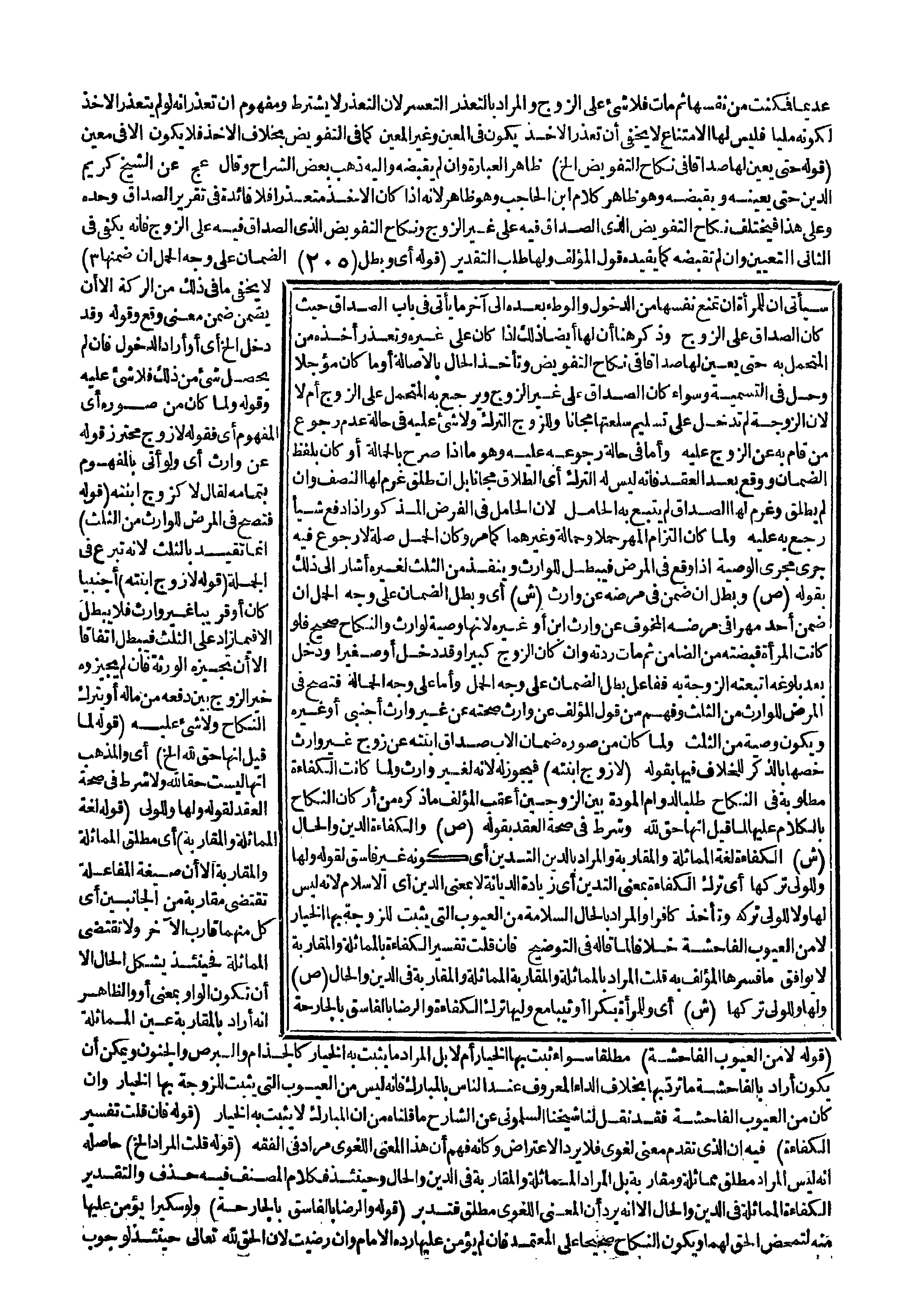 ـــــــــــــــــــــــــــــQعَدِيمًا فَمَكَّنَتْ مِنْ نَفْسِهَا ثُمَّ مَاتَ فَلَا شَيْءَ عَلَى الزَّوْجِ وَالْمُرَادُ بِالتَّعَذُّرِ التَّعَسُّرُ؛ لِأَنَّ التَّعَذُّرَ لَا يُشْتَرَطُ وَمَفْهُومُ إنْ تَعَذَّرَ أَنَّهُ لَوْ لَمْ يَتَعَذَّرْ الْأَخْذُ لِكَوْنِهِ مَلِيًّا فَلَيْسَ لَهَا الِامْتِنَاعُ لَا يَخْفَى إنْ تَعَذَّرَ الْأَخْذُ يَكُونُ فِي الْمُعَيَّنِ وَغَيْرِ الْمُعَيَّنِ كَمَا فِي التَّفْوِيضِ بِخِلَافِ الْأَخْذِ فَلَا يَكُونُ إلَّا فِي مُعَيَّنٍ (قَوْلُهُ حَتَّى يُعَيِّنَ لَهَا صَدَاقًا فِي نِكَاحِ التَّفْوِيضِ إلَخْ) ظَاهِرُ الْعِبَارَةِ، وَإِنْ لَمْ يَقْبِضْهُ وَإِلَيْهِ ذَهَبَ بَعْضُ الشُّرَّاحِ وَقَالَ عج عَنْ الشَّيْخِ كَرِيمِ الدِّينِ حَتَّى يُعَيِّنَهُ وَيَقْبِضَهُ وَهُوَ ظَاهِرُ كَلَامِ ابْنِ الْحَاجِبِ وَهُوَ ظَاهِرٌ؛ لِأَنَّهُ إذَا كَانَ الْأَخْذُ مُتَعَذِّرًا فَلَا فَائِدَةَ فِي تَقْرِيرِ الصَّدَاقِ وَحْدَهُ وَعَلَى هَذَا فَيَخْتَلِفُ نِكَاحُ التَّفْوِيضِ الَّذِي الصَّدَاقُ فِيهِ عَلَى غَيْرِ الزَّوْجِ وَنِكَاحُ التَّفْوِيضِ الَّذِي الصَّدَاقُ فِيهِ عَلَى الزَّوْجِ فَإِنَّهُ يَكْفِي فِي الثَّانِي التَّعْيِينُ، وَإِنْ لَمْ تَقْبِضْهُ كَمَا يُفِيدُهُ قَوْلُ الْمُؤَلِّفِ وَلَهَا طَلَبُ التَّقْدِيرِ (قَوْلُهُ أَيْ وَبَطَلَ الضَّمَانُ عَلَى وَجْهِ الْحَمْلِ إنْ ضَمِنَهَا) لَا يَخْفَى مَا فِي ذَلِكَ مِنْ الرَّكَّةِ إلَّا أَنْ يُضَمِّنَ ضَمِنَ مَعْنَى وَقَعَ وَقَوْلُهُ وَقَدْ دَخَلَ إلَخْ أَيْ أَوْ أَرَادَ الدُّخُولَ، فَإِنْ لَمْ يَحْصُلْ شَيْءٌ مِنْ ذَلِكَ فَلَا شَيْءَ عَلَيْهِ وَقَوْلُهُ وَلَمَّا كَانَ مِنْ صُوَرِهِ أَيْ الْمَفْهُومِ أَيْ فَقَوْلُهُ لَا زَوْجَ مُحْتَرَزُ قَوْلِهِ عَنْ وَارِثٍ أَيْ، وَلَوْ أَتَى بِالْمَفْهُومِ بِتَمَامِهِ لَقَالَ لَا كَزَوْجِ ابْنَتِهِ (قَوْلُهُ فَتَصِحُّ فِي الْمَرَضِ لِلْوَارِثِ مِنْ الثُّلُثِ) إنَّمَا تَقَيَّدَ بِالثُّلُثِ؛ لِأَنَّهُ تَبَرُّعٌ فِي الْجُمْلَةِ (قَوْلُهُ لَا زَوْجُ ابْنَتِهِ) أَجْنَبِيًّا كَانَ أَوْ قَرِيبًا غَيْرَ وَارِثٍ فَلَا يَبْطُلُ إلَّا فِيمَا زَادَ عَلَى الثُّلُثِ فَيَبْطُلُ اتِّفَاقًا إلَّا أَنْ تُجِيزَهُ الْوَرَثَةُ، فَإِنْ لَمْ يُجِيزُوهُ خُيِّرَ الزَّوْجُ بَيْنَ دَفْعِهِ مِنْ مَالِهِ أَوْ يَتْرُكَ النِّكَاحَ وَلَا شَيْءَ عَلَيْهِ (قَوْلُهُ لِمَا قِيلَ أَنَّهَا حَقٌّ لِلَّهِ إلَخْ) أَيْ وَالْمَذْهَبُ أَنَّهَا لَيْسَتْ حَقًّا لِلَّهِ وَلَا شُرِطَ فِي صِحَّةِ الْعَقْدِ لِقَوْلِهِ وَلَهَا وَلِلْوَلِيِّ.