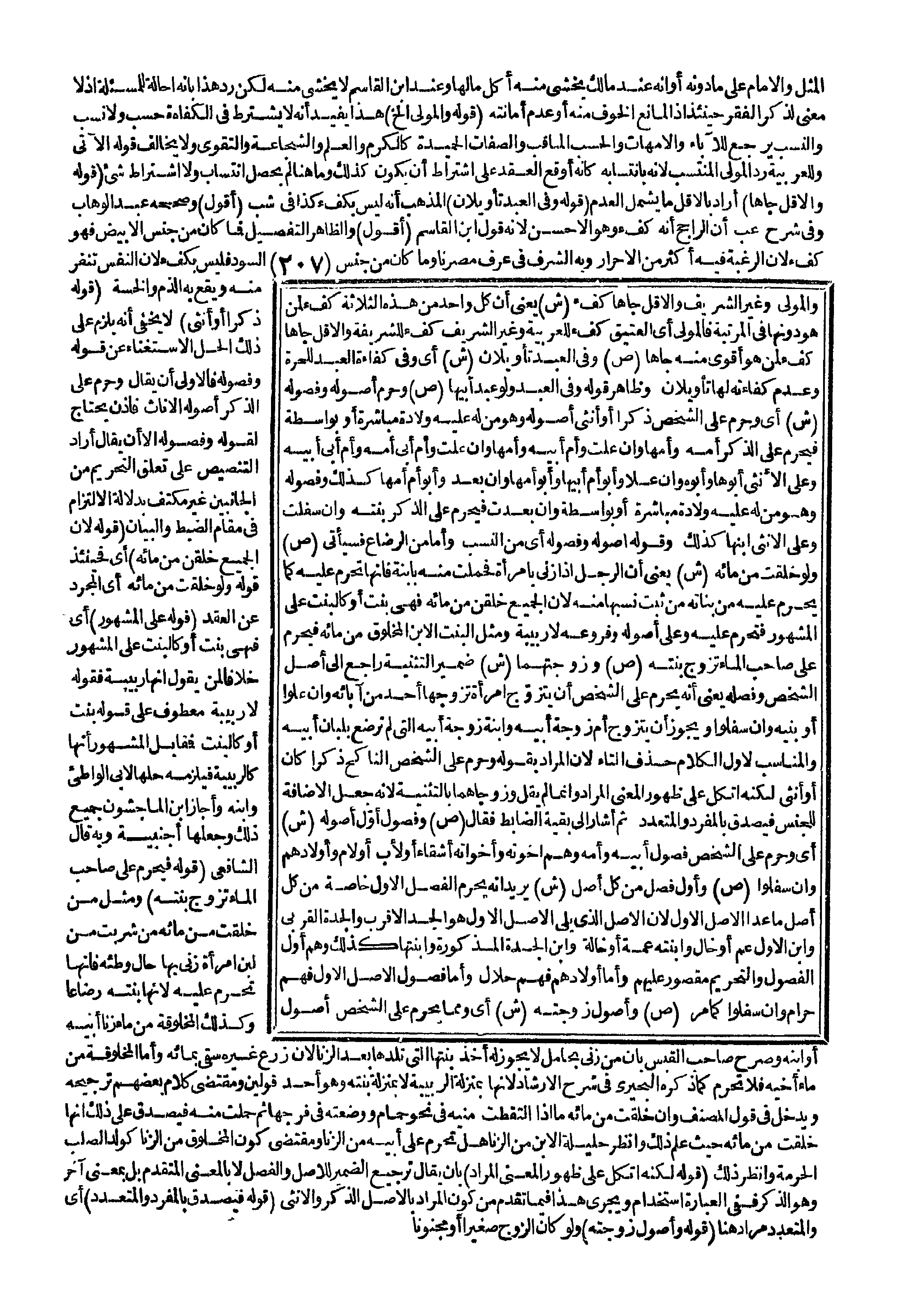 (قَوْلُهُ ذَكَرًا أَوْ أُنْثَى) لَا يَخْفَى أَنَّهُ يَلْزَمُ عَلَى ذَلِكَ الْحُرِّ الِاسْتِغْنَاءُ عَنْ قَوْلِهِ وَفُصُولُهُ فَالْأَوْلَى أَنْ يُقَالَ وَحَرُمَ عَلَى الذَّكَرِ أُصُولُهُ الْإِنَاثُ فَإِذَنْ يَحْتَاجُ لِقَوْلِهِ وَفُصُولُهُ إلَّا أَنْ يُقَالَ أَرَادَ التَّنْصِيصَ عَلَى تَعَلُّقِ التَّحْرِيمِ مِنْ الْجَانِبَيْنِ غَيْرَ مُكْتَفٍ بِدَلَالَةِ الِالْتِزَامِ فِي مَقَامِ الضَّبْطِ وَالْبَيَانِ.