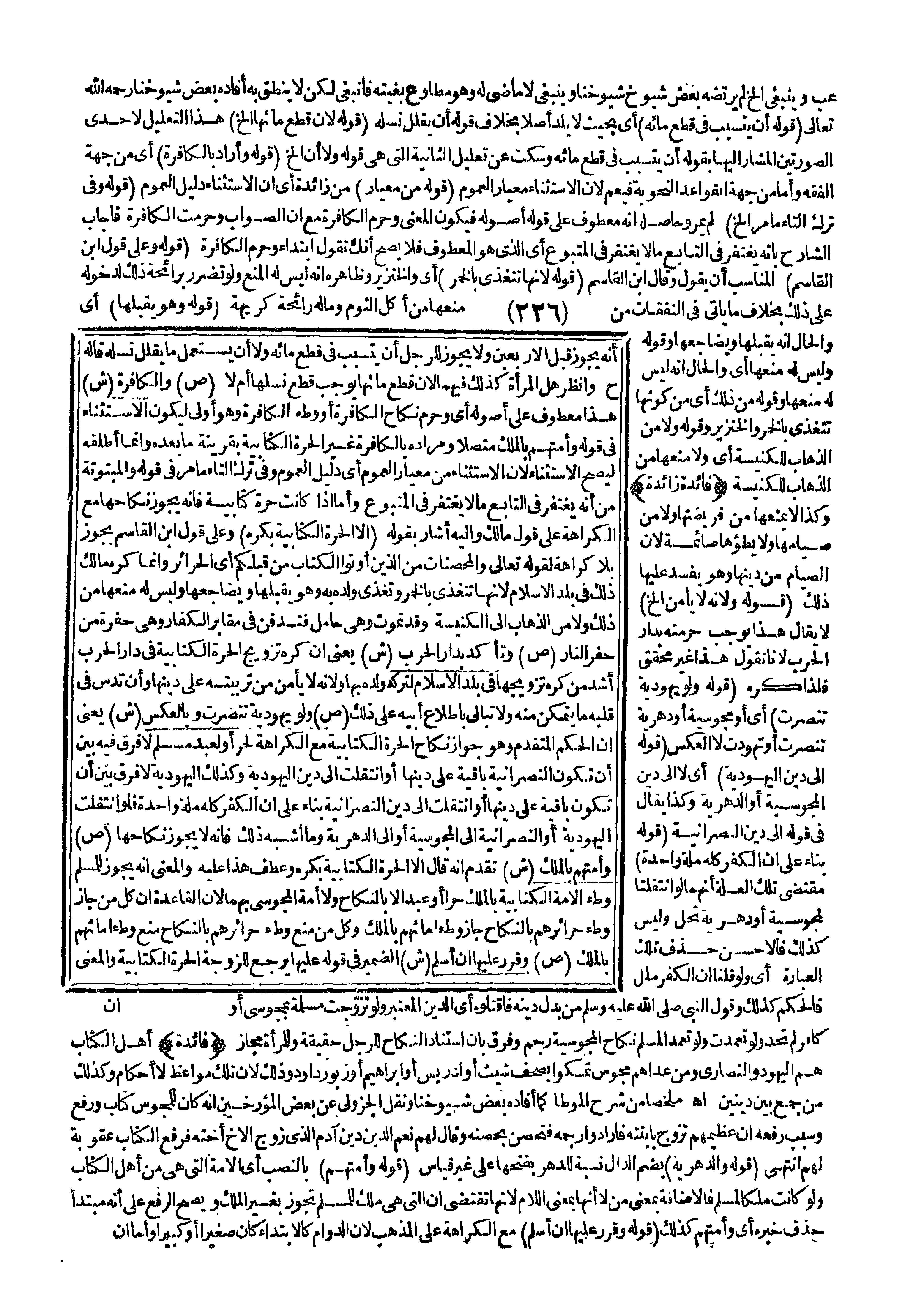 (قَوْلُهُ وَأَرَادَ بِالْكَافِرَةِ) أَيْ مِنْ جِهَةِ الْفِقْهِ. وَأَمَّا مِنْ جِهَةِ الْقَوَاعِدِ النَّحْوِيَّةِ فَيَعُمُّ؛ لِأَنَّ الِاسْتِثْنَاءَ مِعْيَارُ الْعُمُومِ (قَوْلُهُ مِنْ مِعْيَارِ) مِنْ زَائِدَةٌ أَيْ أَنَّ الِاسْتِثْنَاءَ دَلِيلُ الْعُمُومِ (قَوْلُهُ وَفِي تَرْكِ التَّاءِ مَا مَرَّ إلَخْ) لَمْ يَمُرَّ وَحَاصِلُهُ أَنَّهُ مَعْطُوفٌ عَلَى قَوْلِهِ أُصُولُهُ فَيَكُونُ الْمَعْنَى وَحَرُمَ الْكَافِرَةُ مَعَ أَنَّ الصَّوَابَ وَحُرِّمَتْ الْكَافِرَةُ فَأَجَابَ الشَّارِحُ بِأَنَّهُ يُغْتَفَرُ فِي التَّابِعِ مَا لَا يُغْتَفَرُ فِي الْمَتْبُوعِ أَيْ الَّذِي هُوَ الْمَعْطُوفُ فَلَا يَصِحُّ أَنَّك تَقُولُ ابْتِدَاءً وَحَرُمَ الْكَافِرَةُ (قَوْلُهُ وَعَلَى قَوْلِ ابْنِ الْقَاسِمِ) الْمُنَاسِبُ أَنْ يَقُولَ وَقَالَ ابْنُ الْقَاسِمِ (قَوْلُهُ: لِأَنَّهَا تَتَغَذَّى بِالْخَمْرِ) أَيْ وَالْخِنْزِيرِ وَظَاهِرُهُ أَنَّهُ لَيْسَ لَهُ الْمَنْعُ، وَلَوْ تَضَرَّرَ بِرَائِحَةِ ذَلِكَ لِدُخُولِهِ عَلَى ذَلِكَ بِخِلَافِ مَا يَأْتِي فِي النَّفَقَاتِ مِنْ مَنْعِهَا مِنْ أَكْلِ الثُّومِ وَمَا لَهُ رَائِحَةٌ كَرِيهَةٌ (قَوْلُهُ وَهُوَ يُقَبِّلُهَا) أَيْ وَالْحَالُ أَنَّهُ يُقَبِّلُهَا وَيُضَاجِعُهَا وَقَوْلُهُ وَلَيْسَ لَهُ مَنْعُهَا أَيْ وَالْحَالُ أَنَّهُ لَيْسَ لَهُ مَنْعُهَا وَقَوْلُهُ مِنْ ذَلِكَ أَيْ مِنْ كَوْنِهَا تَتَغَذَّى بِالْخَمْرِ وَالْخِنْزِيرِ وَقَوْلُهُ وَلَا مِنْ الذَّهَابِ لِلْكَنِيسَةِ أَيْ وَلَا مَنْعِهَا مِنْ الذَّهَابِ لِلْكَنِيسَةِ.