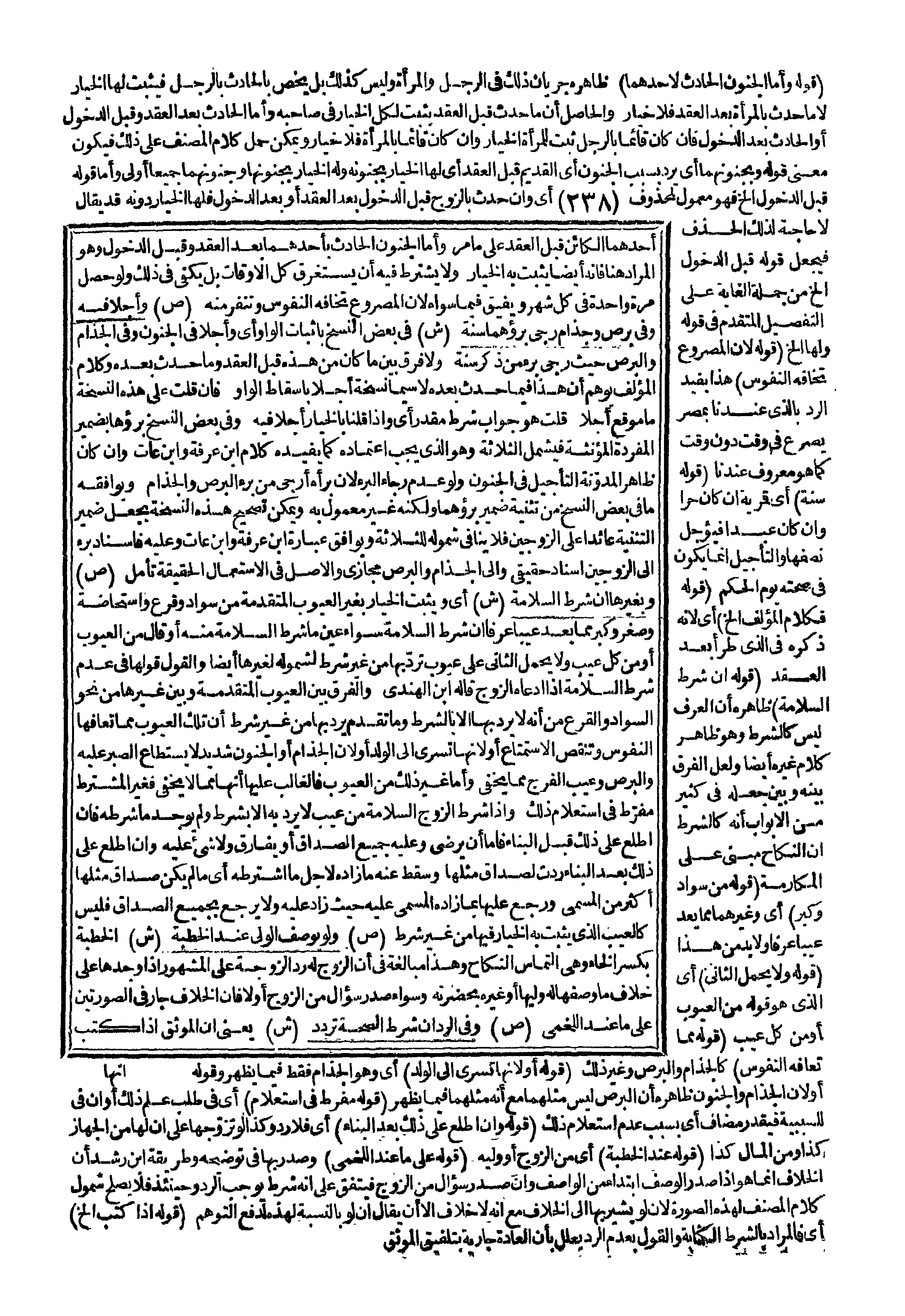 ـــــــــــــــــــــــــــــQ (قَوْلُهُ: وَأَمَّا الْجُنُونُ الْحَادِثُ لِأَحَدِهِمَا) ظَاهِرُهُ جَرَيَانُ ذَلِكَ فِي الرَّجُلِ وَالْمَرْأَةِ، وَلَيْسَ كَذَلِكَ، بَلْ يُخَصُّ بِالْحَادِثِ بِالرَّجُلِ، فَيَثْبُتُ لَهَا الْخِيَارُ لَا مَا حَدَثَ بِالْمَرْأَةِ بَعْدَ الْعَقْدِ، فَلَا خِيَارَ، وَالْحَاصِلُ أَنَّ مَا حَدَثَ قَبْلَ الْعَقْدِ يَثْبُتُ لِكُلٍّ الْخِيَارُ فِي صَاحِبِهِ، وَأَمَّا الْحَادِثُ بَعْدَ الْعَقْدِ وَقَبْلَ الدُّخُولِ، أَوِ الْحَادِثُ بَعْدَ الدُّخُولِ، فَإِنْ كَانَ قَائِمًا بِالرَّجُلِ ثَبَتَ لِلْمَرْأَةِ الْخِيَارُ، وَإِنْ كَانَ قَائِمًا بِالْمَرْأَةِ فَلَا خِيَارَ، وَيُمْكِنُ حَمْلُ كَلَامِ الْمُصَنِّفِ عَلَى ذَلِكَ، فَيَكُونُ مَعْنَى قَوْلِهِ: وَبِجُنُونِهِمَا، أَيْ: يُرَدُّ بِسَبَبِ الْجُنُونِ، أَيِ: الْقَدِيمِ قَبْلَ الْعَقْدِ، أَيْ: لَهَا الْخِيَارُ بِجُنُونِهِ، وَلَهُ الْخِيَارُ بِجُنُونِهَا وَجُنُونِهِمَا جَمِيعًا أَوْلَى، وَأَمَّا قَوْلُهُ: "قَبْلَ الدُّخُولِ ... إِلَخْ"، فَهُوَ مَعْمُولُ الْمَحْذُوفِ، أَيْ: وَإِنْ حَدَثَ بِالزَّوْجِ قَبْلَ الدُّخُولِ بَعْدَ الْعَقْدِ أَوْ بَعْدَ الدُّخُولِ فَلَهَا الْخِيَارُ دُونَهُ، قَدْ يُقَالُ: لَا حَاجَةَ لِذَلِكَ الْحَذْفِ، فَيُجْعَلُ قَوْلُهُ: " قَبْلَ الدُّخُولِ