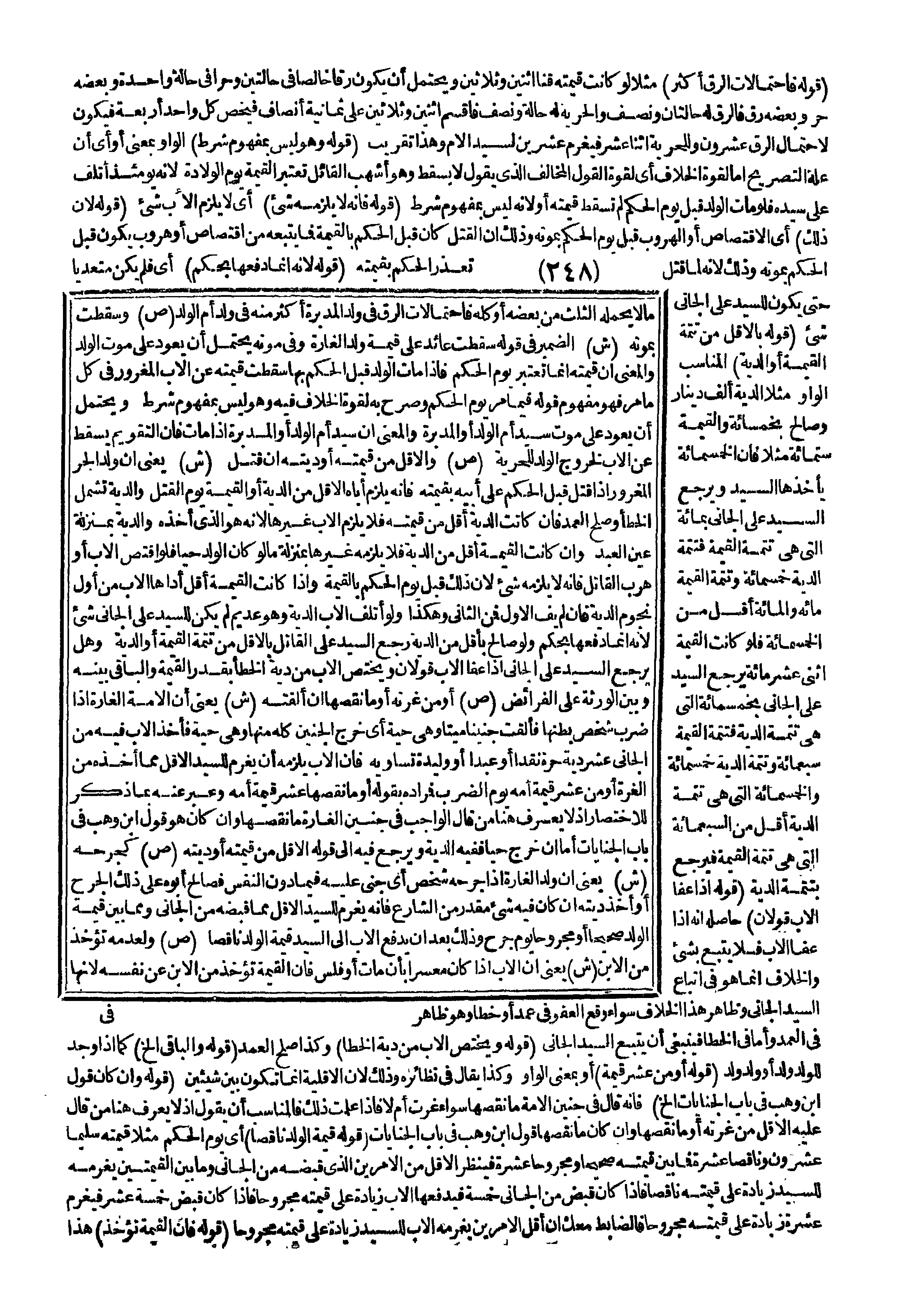 ـــــــــــــــــــــــــــــQقَوْلُهُ: فَاحْتِمَالَاتُ الرِّقِّ أَكْثَرُ) مَثَلًا لَوْ كَانَتْ قِيمَتُهُ قِنًّا اثْنَيْنِ وَثَلَاثِينَ، وَيُحْتَمَلُ أَنْ يَكُونَ رِقًّا خَالِصًا فِي حَالَتَيْنِ وَحُرًّا فِي حَالَةٍ وَاحِدَةٍ وَبَعْضُهُ حُرٌّ وَبَعْضُهُ رِقٌّ فَالرِّقُّ حَالَتَانِ وَنِصْفٌ وَالْحُرِّيَّةُ لَهُ حَالَةٌ وَنِصْفٌ فَاقْسِمْ اثْنَيْنِ وَثَلَاثِينَ عَلَى ثَمَانِيَةِ أَنْصَافٍ فَيَخُصُّ كُلَّ وَاحِدٍ أَرْبَعَةٌ فَيَكُونُ لِاحْتِمَالِ الرِّقِّ عِشْرُونَ وَلِلْحُرِّيَّةِ اثْنَا عَشَرَ فَيَغْرَمُ عِشْرِينَ لِسَيِّدِ الْأُمِّ وَهَذَا تَقْرِيبٌ. (قَوْلُهُ: وَهُوَ لَيْسَ بِمَفْهُومِ شَرْطٍ) الْوَاوُ بِمَعْنَى أَوْ أَيْ إنَّ عِلَّةَ التَّصْرِيحِ إمَّا لِقُوَّةِ الْخِلَافِ أَيْ لِقُوَّةِ الْقَوْلِ الْمُخَالِفِ الَّذِي يَقُولُ لَا يَسْقُطُ وَهُوَ أَشْهَبُ الْقَائِلُ تُعْتَبَرُ الْقِيمَةُ يَوْمَ الْوِلَادَةِ؛ لِأَنَّهُ يَوْمَئِذٍ أُتْلِفَ عَلَى سَيِّدِهِ فَلَوْ مَاتَ الْوَلَدُ قَبْلَ يَوْمِ الْحُكْمِ لَمْ تَسْقُطْ قِيمَتُهُ أَوْ لِأَنَّهُ لَيْسَ بِمَفْهُومِ شَرْطٍ.