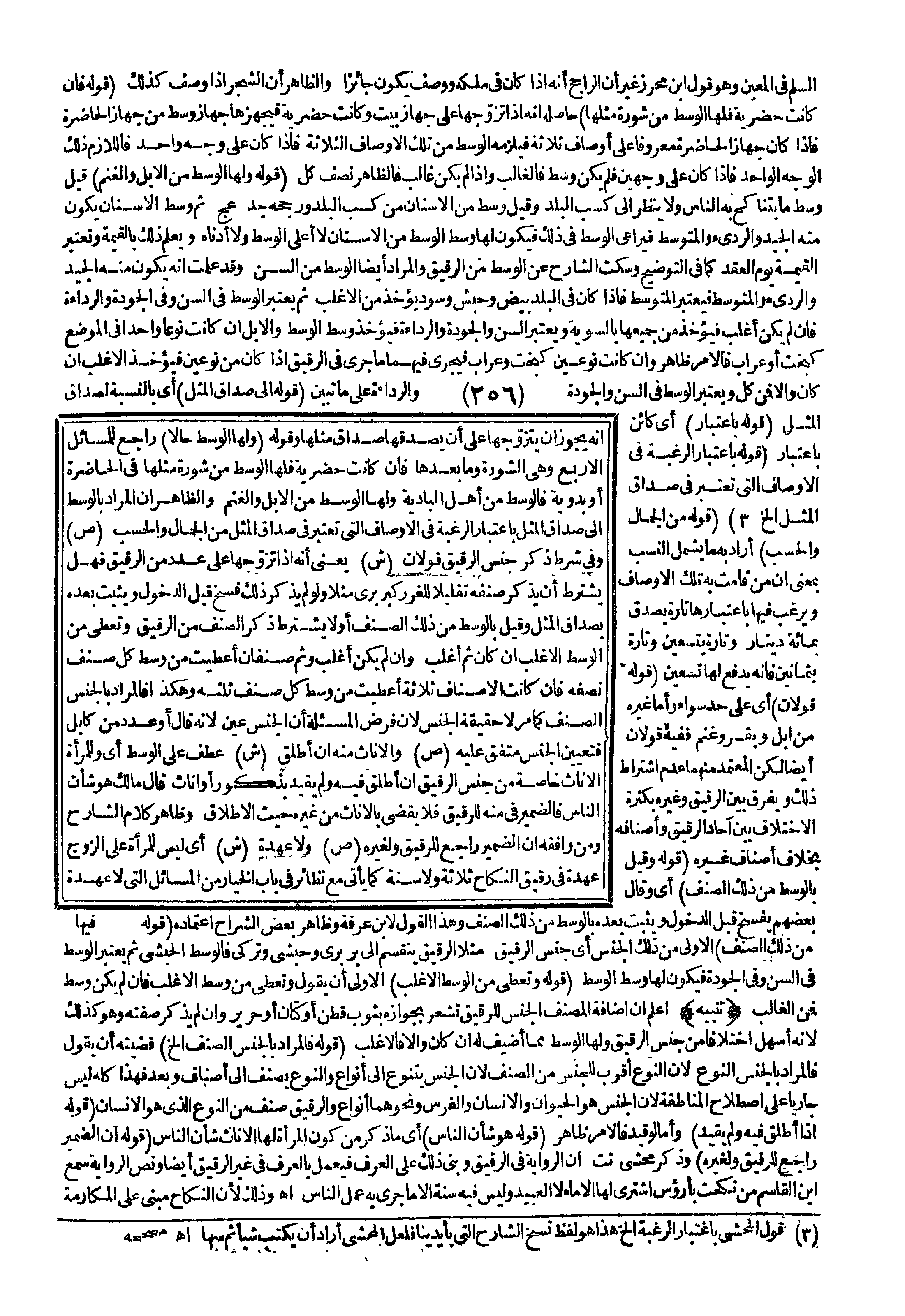 وَسَكَتَ الشَّارِحُ عَنْ الْوَسَطِ مِنْ الرَّقِيقِ وَالْمُرَادُ أَيْضًا الْوَسَطُ مِنْ السِّنِّ وَقَدْ عَلِمْت أَنَّهُ يَكُونُ مِنْهُ الْجَيِّدُ وَالرَّدِيءُ وَالْمُتَوَسِّطُ فَيُعْتَبَرُ الْمُتَوَسِّطُ فَإِذَا كَانَ فِي الْبَلَدِ بِيضٌ وَحَبَشٌ وَسُودٌ يُؤْخَذُ مِنْ الْأَغْلَبِ ثُمَّ يُعْتَبَرُ الْوَسَطُ فِي السِّنِّ وَفِي الْجَوْدَةِ وَالرَّدَاءَةِ فَإِنْ لَمْ يَكُنْ أَغْلَبَ فَيُؤْخَذُ مِنْ جَمِيعِهَا بِالسَّوِيَّةِ وَيُعْتَبَرُ السِّنُّ وَالْجَوْدَةُ وَالرَّدَاءَةُ فَيُؤْخَذُ وَسَطُ الْوَسَطِ وَالْإِبِلِ إنْ كَانَتْ نَوْعًا وَاحِدًا فِي الْمَوْضِعِ كَبُخْتٍ أَوْ عِرَابٍ فَالْأَمْرُ ظَاهِرٌ وَإِنْ كَانَتْ نَوْعَيْنِ كَبُخْتٍ وَعِرَابٍ فَيَجْرِي فِيهِمَا مَا جَرَى فِي الرَّقِيقِ إذَا كَانَ مِنْ نَوْعَيْنِ فَيُؤْخَذُ الْأَغْلَبُ إنْ كَانَ وَإِلَّا فَمِنْ كُلٍّ وَيُعْتَبَرُ الْوَسَطُ فِي السِّنِّ وَالْجَوْدَةِ وَالرَّدَاءَةِ عَلَى مَا تَبَيَّنَ. (قَوْلُهُ: إلَى صَدَاقِ الْمِثْلِ) أَيْ بِالنِّسْبَةِ لِصَدَاقِ الْمِثْلِ.
