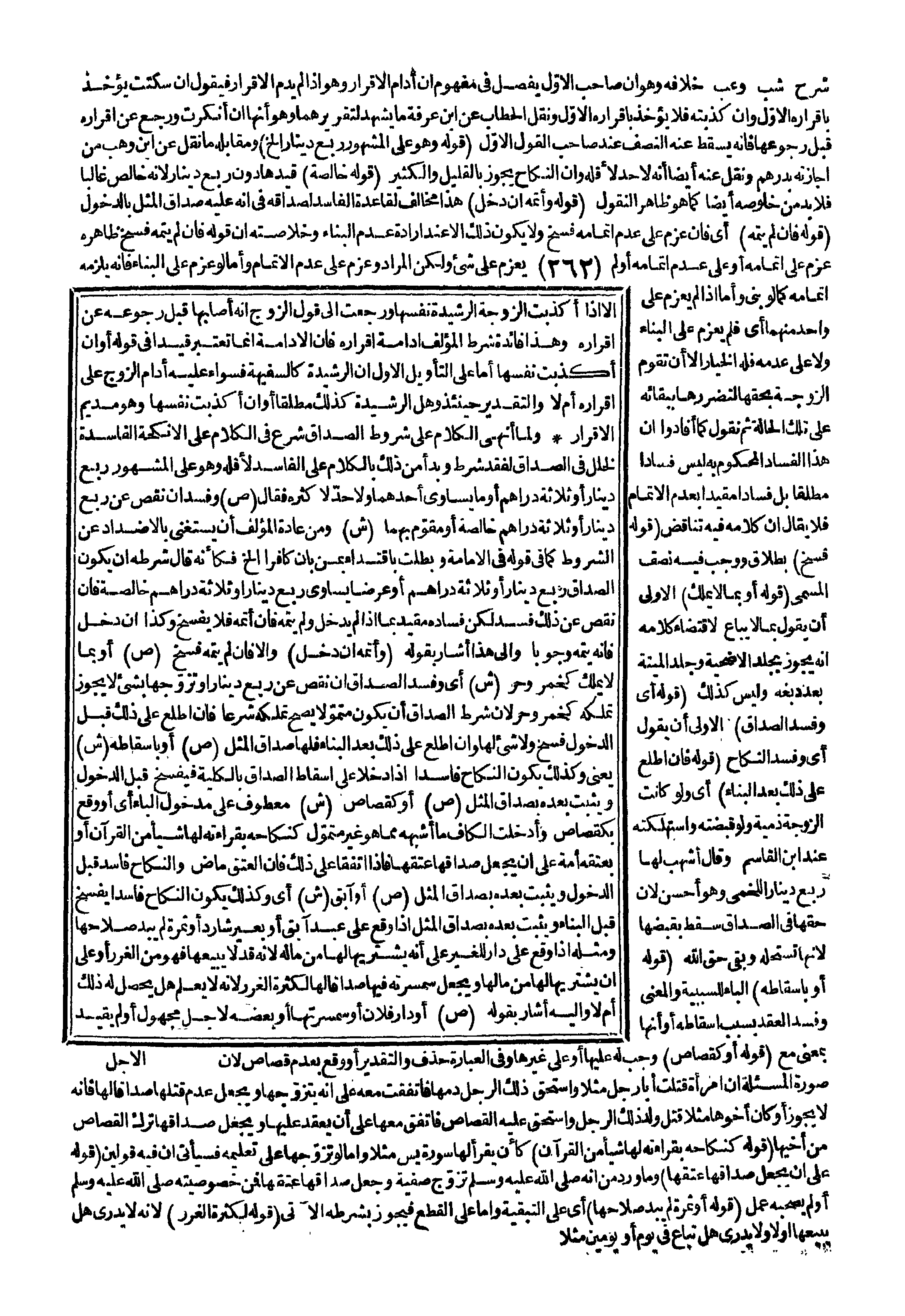 ـــــــــــــــــــــــــــــQشَرْحِ شب وَعَبَ خِلَافُهُ وَهُوَ أَنَّ صَاحِبَ الْأَوَّلِ يَفْصِلُ فِي مَفْهُومِ إنْ أَدَامَ الْإِقْرَارَ وَهُوَ إذَا لَمْ يَدُمْ الْإِقْرَارُ فَيَقُولُ إنْ سَكَتَتْ يُؤْخَذُ بِإِقْرَارِهِ الْأَوَّلِ وَإِنْ كَذَّبَتْهُ فَلَا يُؤْخَذُ بِإِقْرَارِهِ الْأَوَّلِ، وَنَقَلَ الْخَطَّابُ عَنْ ابْنِ عَرَفَةَ مَا يَشْهَدُ لِتَقْرِيرِهِمَا وَهُوَ أَنَّهَا إنْ أَنْكَرَتْ وَرَجَعَ عَنْ إقْرَارِهِ قَبْلَ رُجُوعِهَا فَإِنَّهُ يَسْقُطُ عَنْهُ النِّصْفُ عِنْدَ صَاحِبِ الْقَوْلِ الْأَوَّلِ