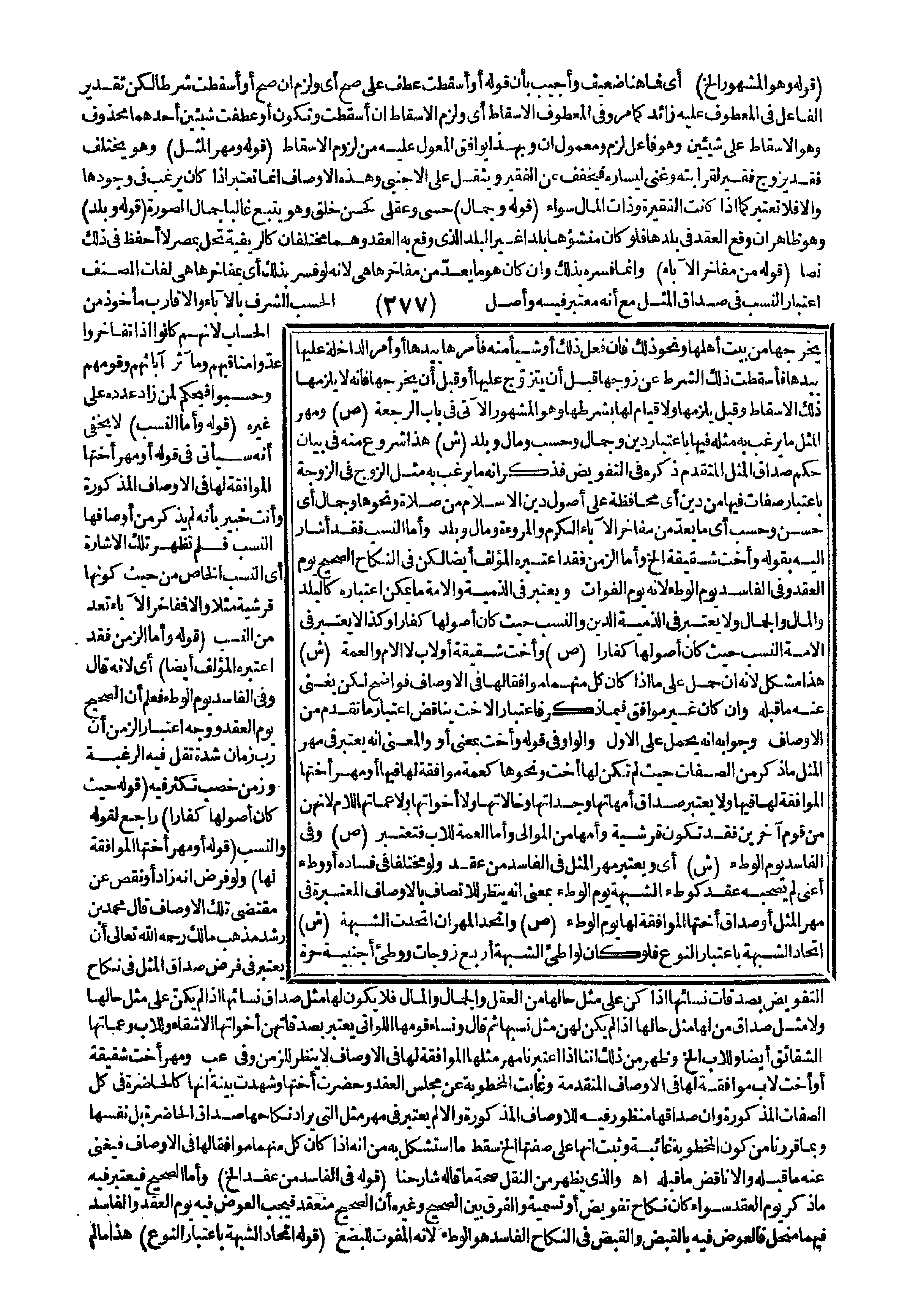 (قَوْلُهُ: وَأَمَّا النَّسَبُ) لَا يَخْفَى أَنَّهُ سَيَأْتِي فِي قَوْلِهِ أَوْ مَهْرِ أُخْتِهَا الْمُوَافِقَةِ لَهَا فِي الْأَوْصَافِ الْمَذْكُورَةِ، وَأَنْتَ خَبِيرٌ بِأَنَّهُ لَمْ يَذْكُرْ مِنْ أَوْصَافِهَا النَّسَبَ فَلَمْ تَظْهَرْ تِلْكَ الْإِشَارَةُ أَيْ النَّسَبُ الْخَاصُّ مِنْ حَيْثُ كَوْنُهَا قُرَشِيَّةً مَثَلًا وَإِلَّا فَمَفَاخِرُ الْآبَاءِ تُعَدُّ مِنْ النَّسَبِ.