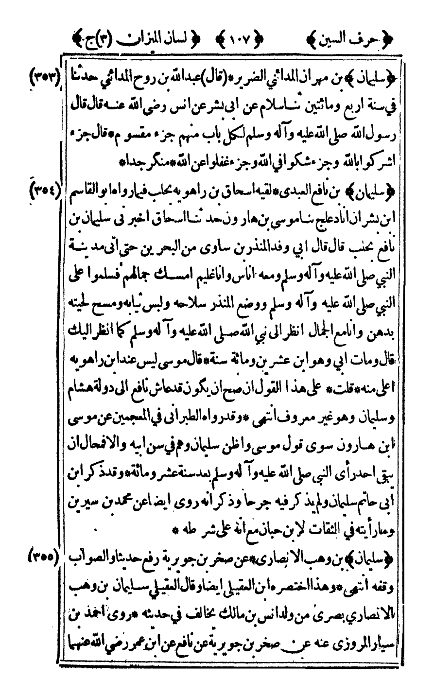 [353] "سليمان" ابن مهران المدائني الضرير قال عبد الله ابن روح المدائني حدثنا في سنة أربع ومائتين ثنا سلام عن أبي بشر عن أنس رضي الله عنه قال: قال رسول الله صلى الله عليه وآله وسلم: "لكل باب منهم جزء مقسوم قال جزء أشركوا بالله وجزء شكوا في الله وجزء غفلوا عن الله" منكر جدا