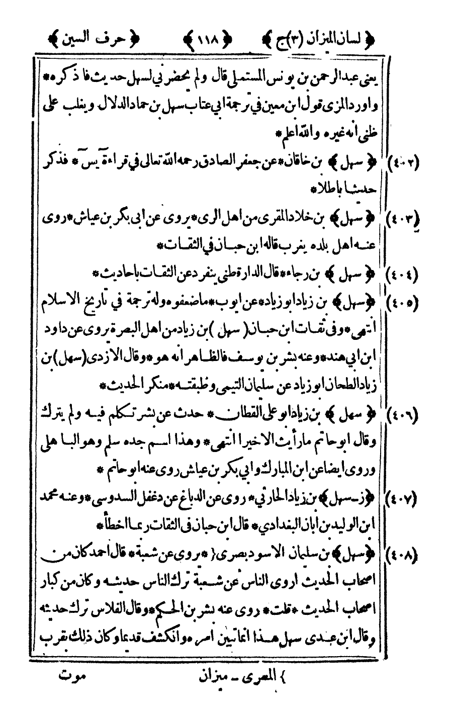 [402] "سهل" بن خاقان عن جعفر الصادق رحمه الله تعالى في قراءة يس فذكر حديثا باطلا.