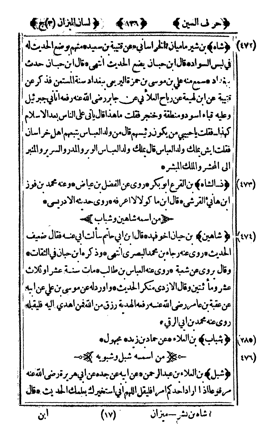 [475] "شباب" بن العلاء عن حماد بن زيد مجهول.