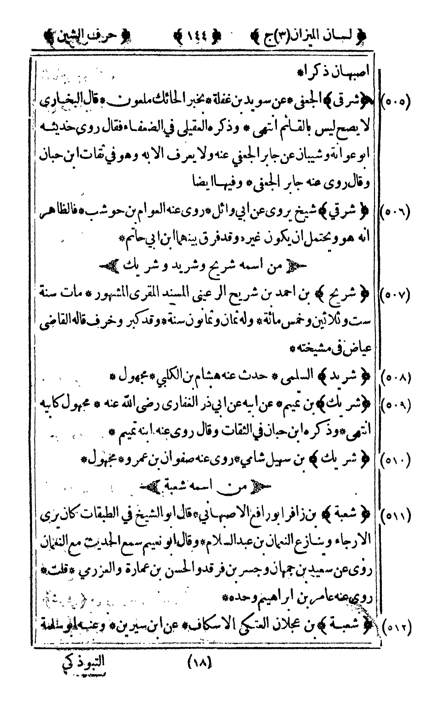 [511] "شعبة" بن زافر أبو رافع الأصبهاني قال أبو الشيخ في الطبقات كان يرى الأرجاء وينازع النعم أن ابن عبد السلام وقال أبو نعيم سمع الحديث مع النعمان روى عن سعيد بن جمهان وجسر بن فرقد والحسن بن عمارة والعزرمي قلت روى عنه عامر بن إبراهيم وحده