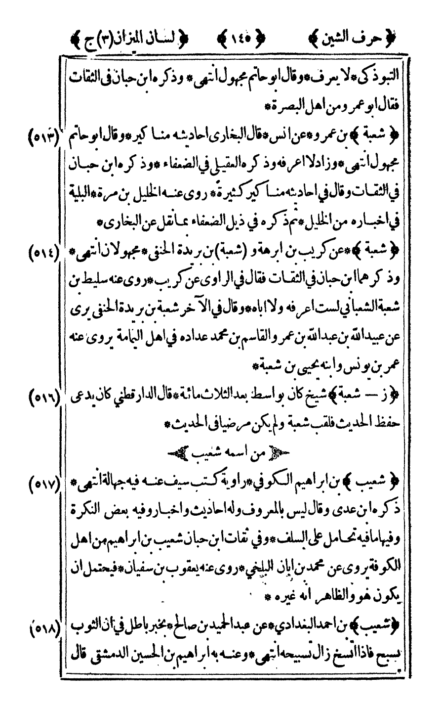 [516] "ز - شعبة" شيخ كان بواسط بعد الثلاث مائة قال الدارقطني كان يدعى حفظ الحديث فلقب شعبة ولم يكن مرضيا في الحديث.