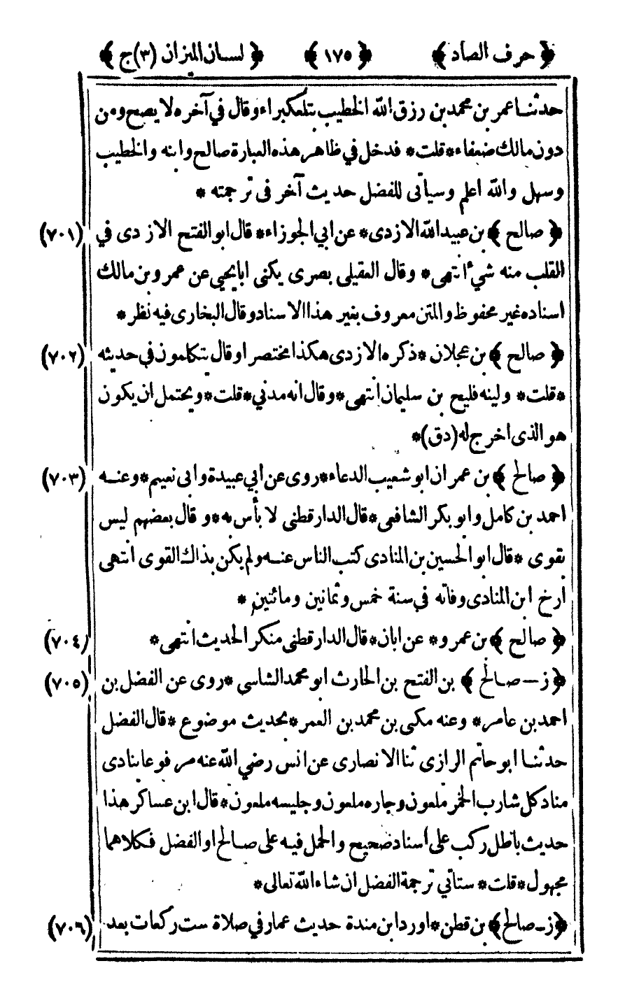 [702] "صالح" بن عجلان ذكره الأزدي هكذا مختصرا وقال يتكلمون في حديثه قلت ولينه فليح بن سليمان انتهى وقال أنه مدني قلت ويحتمل أن يكون هو الذي أخرج له د ق.