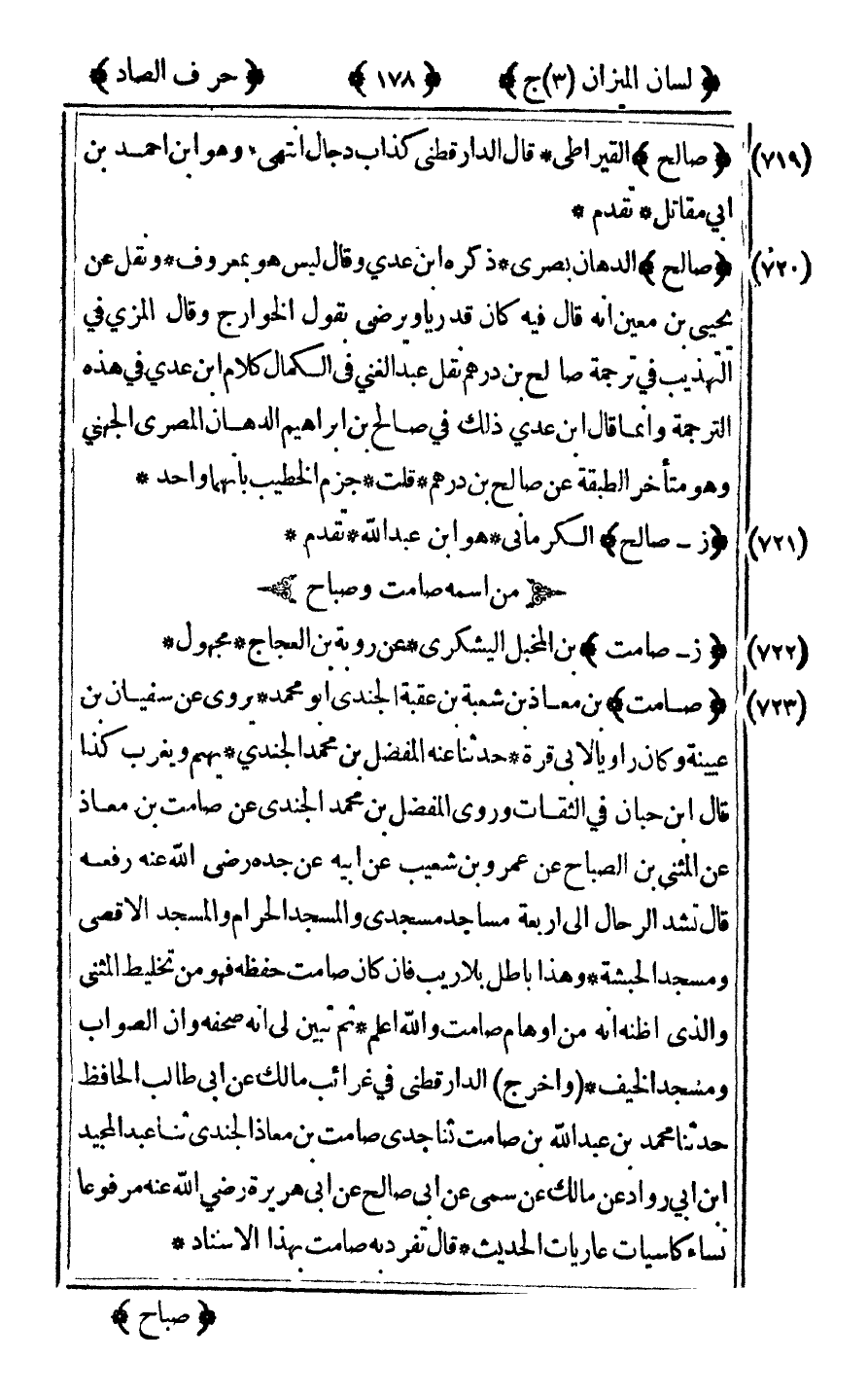 [719] "صالح" القيراطي قال الدارقطني كذاب دجال انتهى وهو بن أحمد بن أبى مقاتل تقدم.