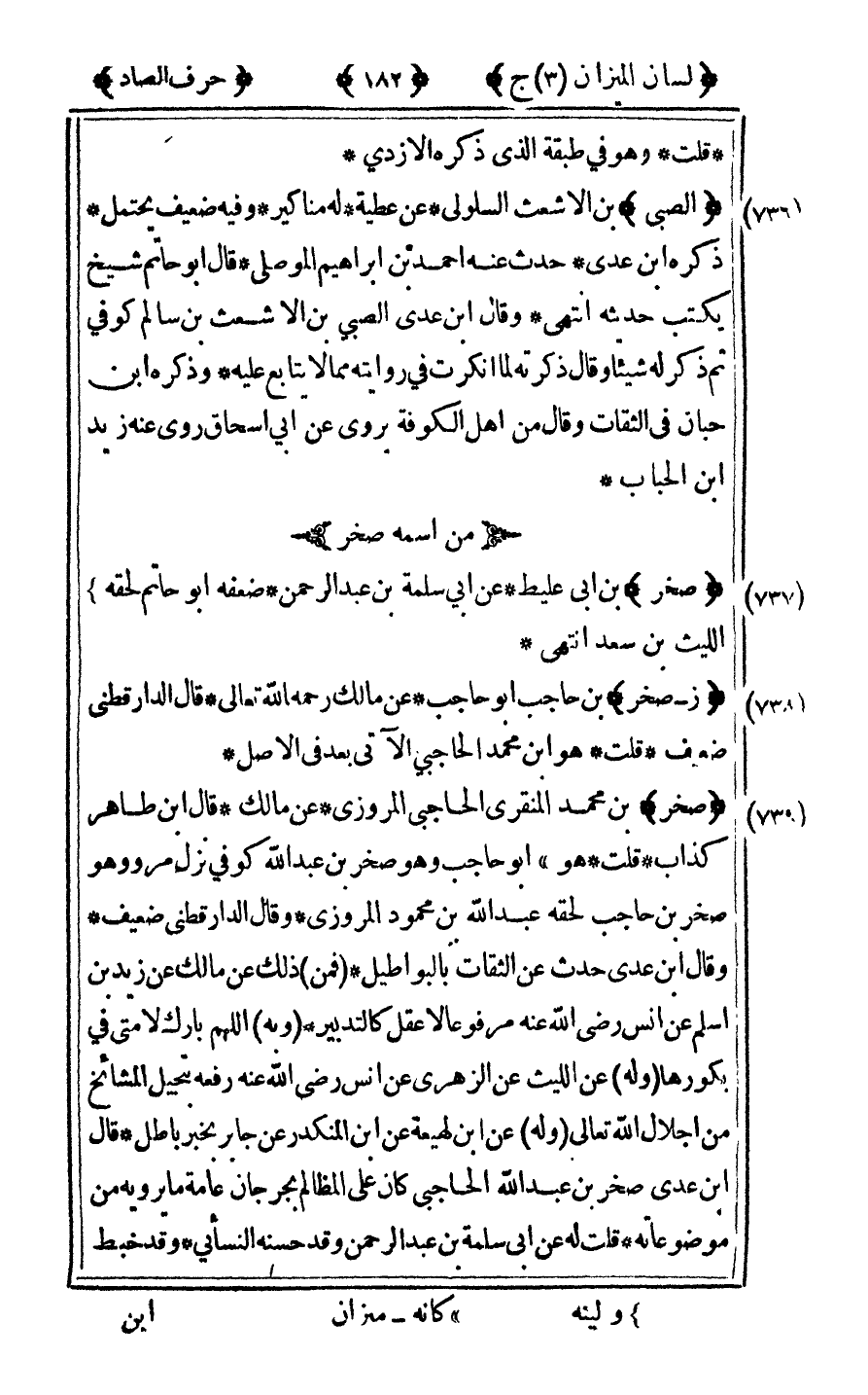 [738] "ز- صخر" بن حاجب أبو حاجب عن مالك رحمه الله تعالى قال الدارقطني ضعيف قلت هو بن محمد الحاجبى الآتي بعد في الأصل.