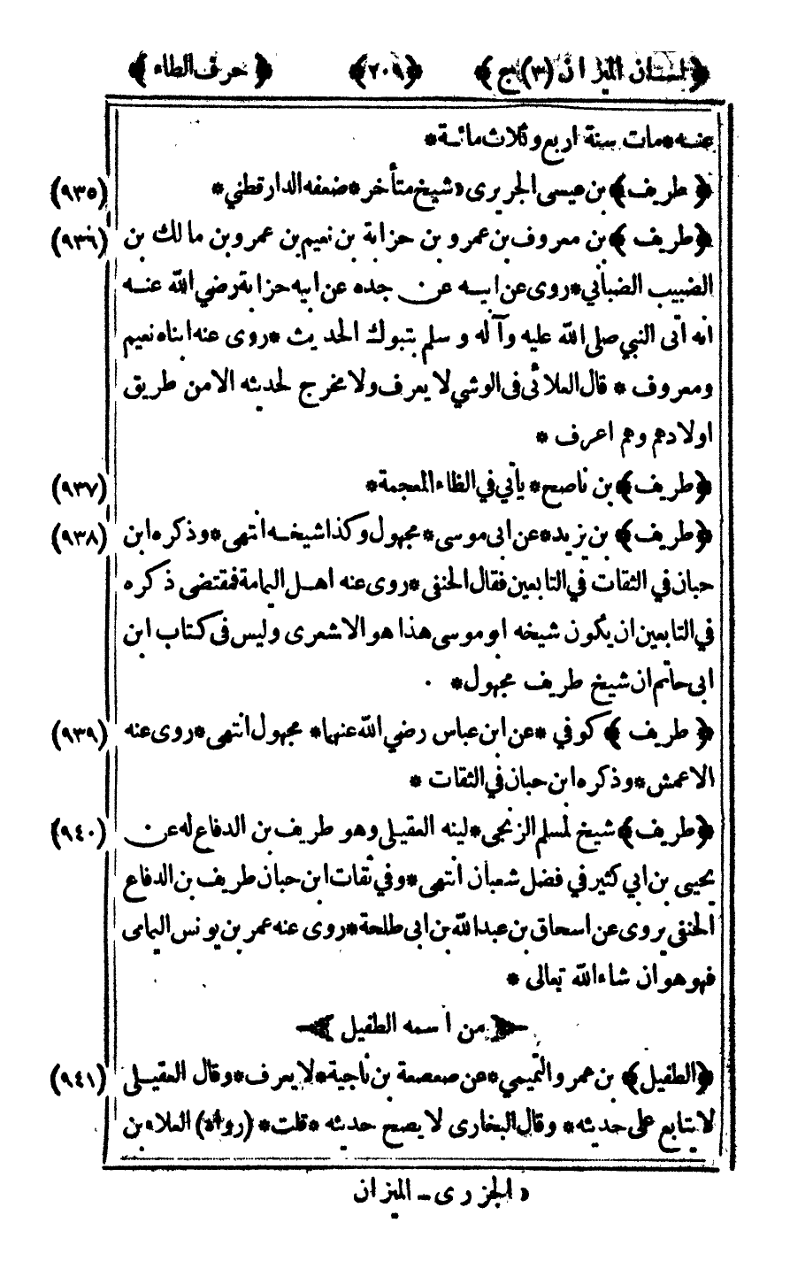 [937] "طريف" بن ناصح يأتي في الظاء المعجمة.