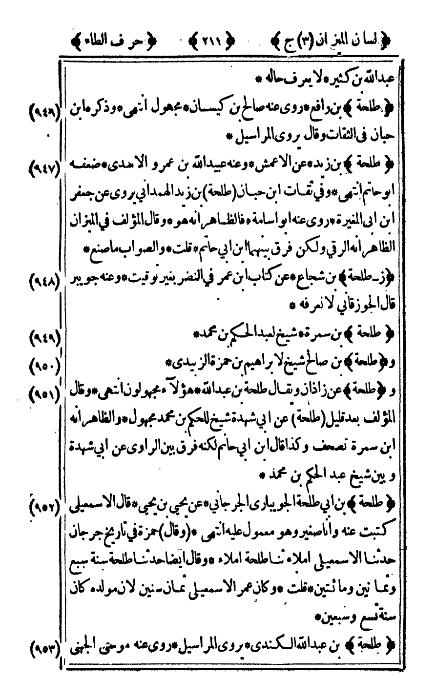 [950] "وطلحة" بن صالح شيخ لإبراهيم بن حمزة الزبيدي.
